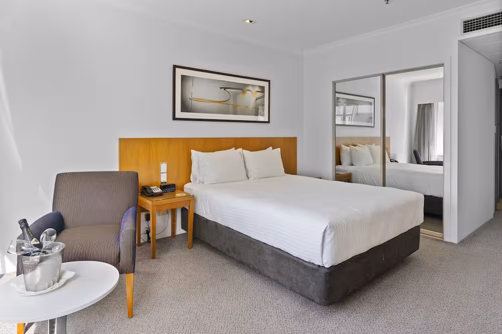 The hotel is set on a tree-lined street mid way between Darling Harbour and Bondi Beach, close to the Opera House and the Harbour foreshores. Perfectly positioned for shopping, Sydney's famous shopping centres, markets and boutique shops are also within walking distance. The Rock, with all its dining opportunities, is just 3 km away. With taxis, trains and buses to the front door, all of Sydney's attractions are within easy reach. Sydney Airport is about 8 km away.