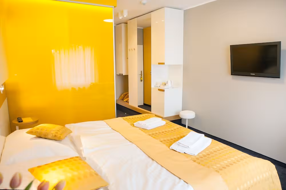 Rooms are equipped with central heating and a fan. All rooms are carpeted and include a double bed. A safe and a minibar are also available. Additional features include a mini fridge and a tea/coffee station. A direct dial telephone, a television with satellite/cable channels, a radio and WiFi (no extra charge) ensure optimal comfort. Bathrooms are equipped with a shower and a bathtub, as well as a hairdryer. The hotel has family rooms and non-smoking rooms.