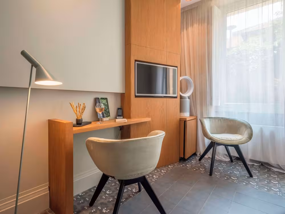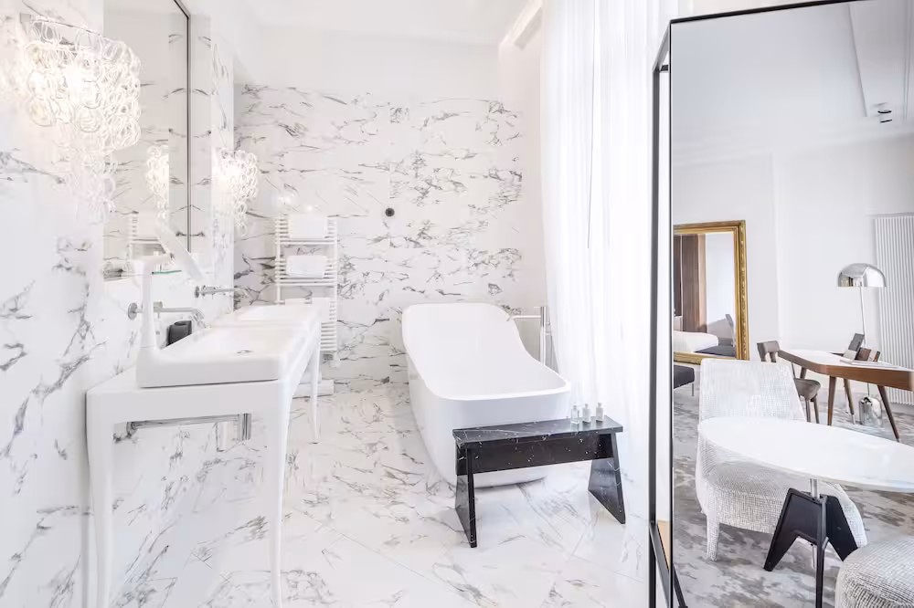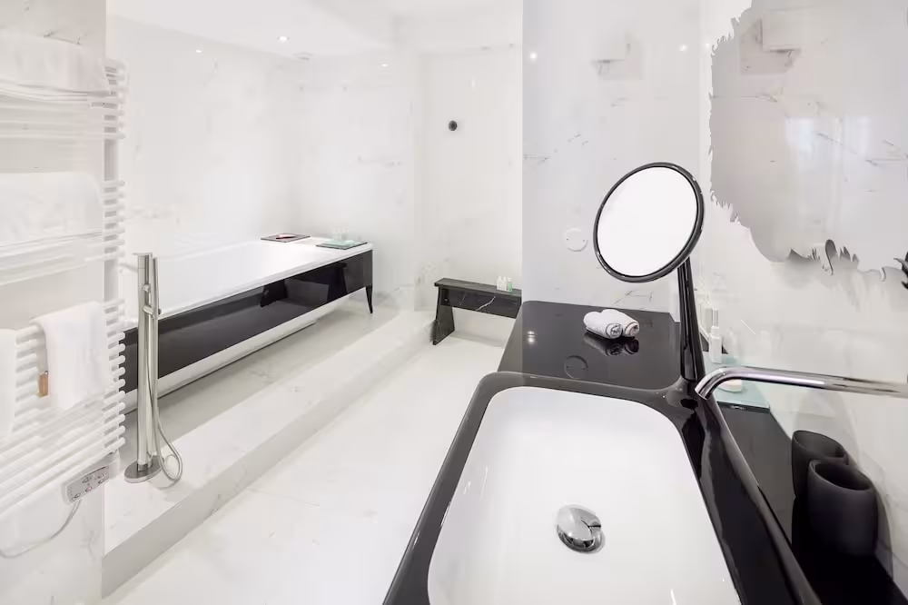 Rooms are equipped with air conditioning and central heating. Rooms have a double bed or a king-size bed. Extra beds can be requested. A safe, a minibar and a desk are also available. Additional features include a mini fridge and a tea/coffee station. A trouser press is provided for guests' convenience. A telephone, a television with satellite/cable channels, an alarm clock and WiFi (no extra charge) are provided as well. Slippers are included. A hairdryer and bathrobes are available in the bathrooms, which are equipped with a shower and a bathtub. As a special feature, bathrooms are also stocked with cosmetic products and a selection of towels. Guests can also book wheelchair-friendly rooms with wheelchair-accessible bathrooms. The hotel has family rooms and non-smoking rooms.