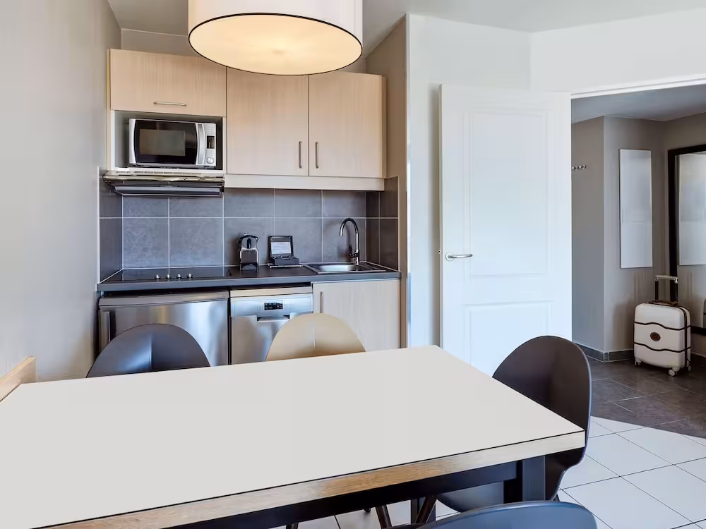 Air conditioning and central heating ensure that rooms maintain comfortable temperatures. The rooms have a double bed and a sofa bed. Valuables can be securely stored in a safe. There is a fully-equipped kitchenette with a refrigerator, stovetop, microwave, dishwasher and oven. An ironing set is provided for guests' convenience. A telephone, a TV and WiFi (no extra charge) are provided as well. A hairdryer is provided in the bathrooms. For extra comfort in the bathrooms, guests are offered cosmetic products. Guests can also book wheelchair-friendly rooms with wheelchair-accessible bathrooms. The hotel has family rooms and non-smoking rooms.