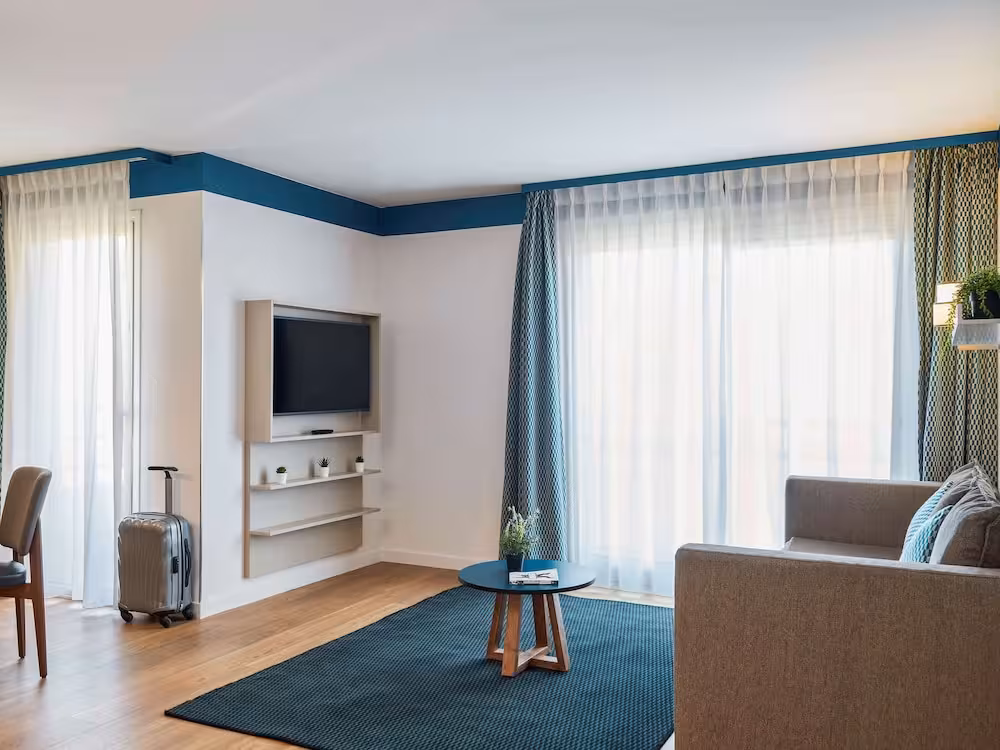 The apartment hotel has a lift and features 89 rooms. Multilingual staff at the reception desk in the lobby are happy to answer any questions. Amenities include a baggage storage service, a safe and a drinks machine. Wireless internet access is provided in public areas. The hotel has wheelchair-accessible facilities. A number of shops, including a supermarket, are great for shopping or just browsing. Additional facilities include a playroom. Guests arriving by car can park their vehicles in the garage or in the car park. Further services and facilities include a 24-hour security service, a babysitting service, a childcare service, room service, a laundry service, a hairdresser and a coin-operated laundry. A fax machine is available for guests' business needs.