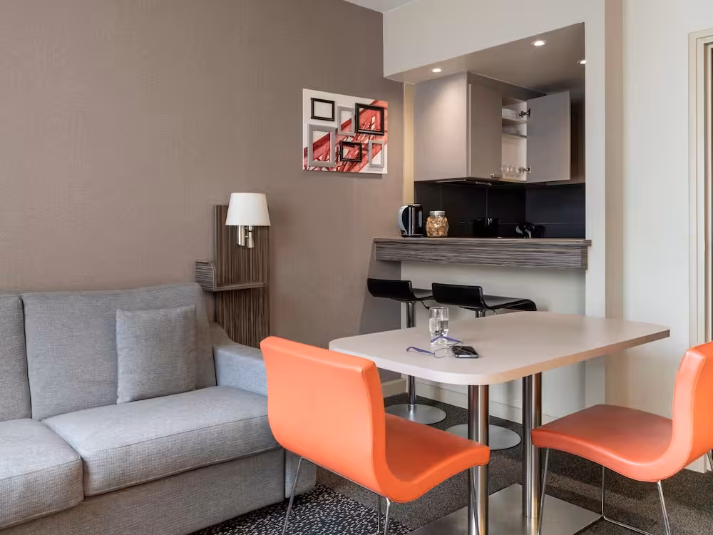 The apartment hotel has 108 rooms, including 37 apartments and 53 studios, which are located on 9 storeys and are reachable by lift. Multilingual staff at the 24-hour reception desk are happy to answer any questions. Amenities available at the hotel include a baggage storage service, a safe and a drinks machine. Wireless internet access is provided in public areas. Wheelchair-accessible facilities are available. Additional facilities include a playroom. Guests arriving by car can park their vehicles in the garage (for a fee) or in the car park. Further services and facilities include a 24-hour security service, medical assistance, room service, a laundry service and a coin-operated laundry. A fax machine is on hand for guests' business and communication needs.