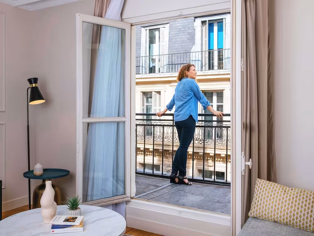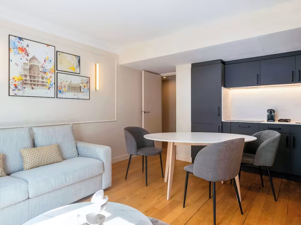 This apartment hotel is located in the area around l’Opéra - a prestigious district known for its dance and lyric arts. This central, animated district is well-regarded for its tourist attractions as well as its proximity to department stores, cafés, restaurants and luxury outlets. Broad avenues leading straight onto the Champs-Élysées or towards the east of Paris make this district a golden triangle of the ‘City of Light’. Also, with its offices, bank headquarters, insurance firms and travel agencies, the district of l’Opéra is one of the main economic hubs of Paris. The nearest links to the public transport network are just 100 m away from this establishment, and the Saint-Lazare railway station is within 10 minutes’ walking distance. It is just 25 km to Orly Airport, and Charles de Gaulle Airport is 30 km away.