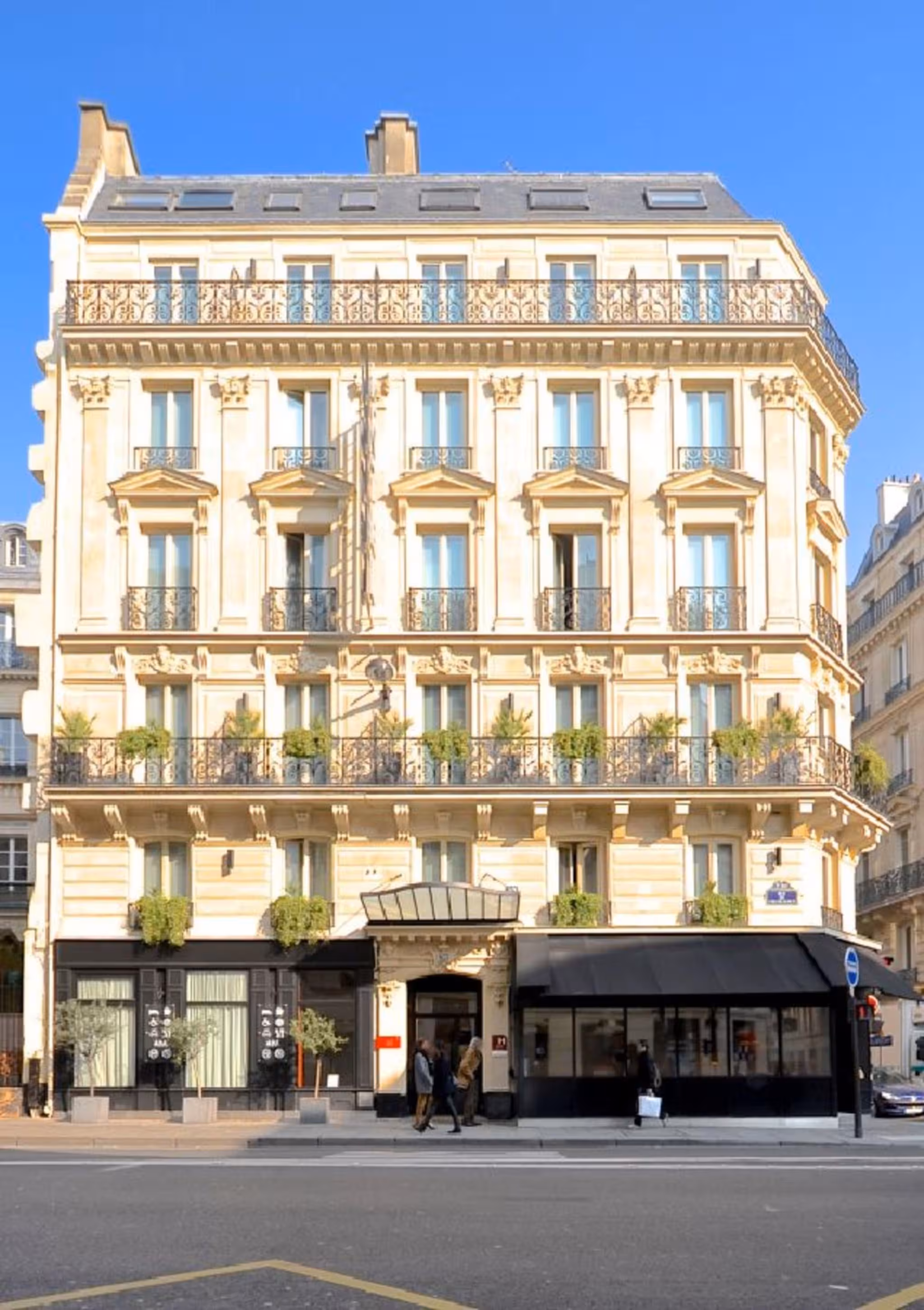 This family-friendly city hotel is situated between the Sacre-Coeur Basilica and the Opera, in the heart of Paris' business and leisure quarter. The closest metro station is only 2 minutes' walk away (line 12). Guests will find restaurants, bars and shops in the immediate vicinity of the business hotel. It is near the very popular cabaret Moulin Rouge and the Galeries Lafayette and Printemps department stores (15 minutes' walk). The Champs-Élysées is only 3.5 km away. Charles de Gaulle Airport is 26 km away and it is 28 km to Orly Airport.