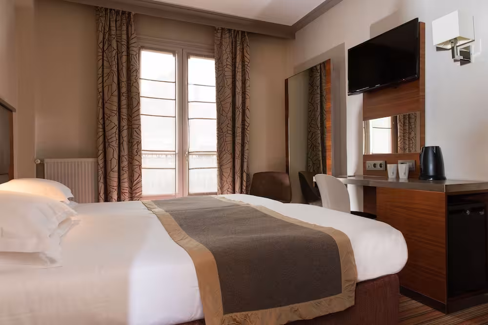 This popular city hotel lies close to the Place de Clichy. Famous sights of interest such as the Opéra Garnier, the Place Vendôme, the Eiffel Tower, the Sacré-Cœur and Notre-Dame all lie within 4 km of the hotel. Countless shopping and entertainment venues can be reached in just a few minutes walk. Links to the public transport network lie within easy walking distance.