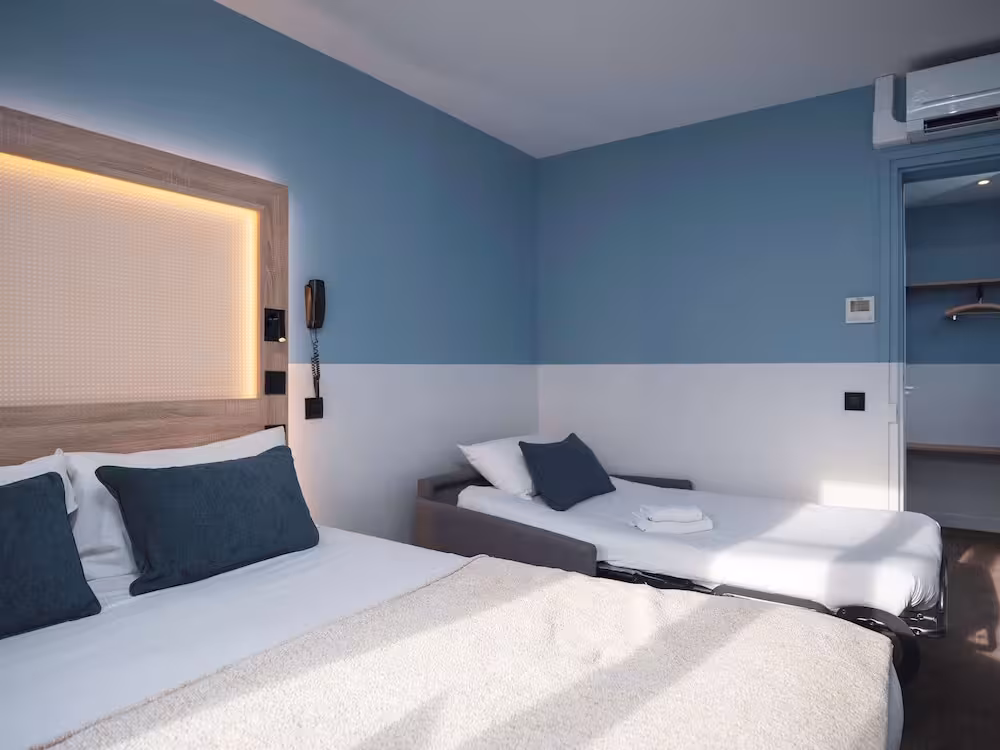 Air conditioning and central heating ensure that rooms maintain comfortable temperatures. The rooms have a double bed and a sofa bed. Extra beds can be requested. A safe provides secure storage for guests' personal property. An ironing set is provided for guests' convenience. A telephone, a television with satellite/cable channels, a radio, a games console, an alarm clock and WiFi (no extra charge) are provided as well. Bathrooms are equipped with a shower and a bathtub, as well as a hairdryer. Guests can also book wheelchair-friendly rooms with wheelchair-accessible bathrooms. The hotel has family rooms, non-smoking rooms and smoking rooms.