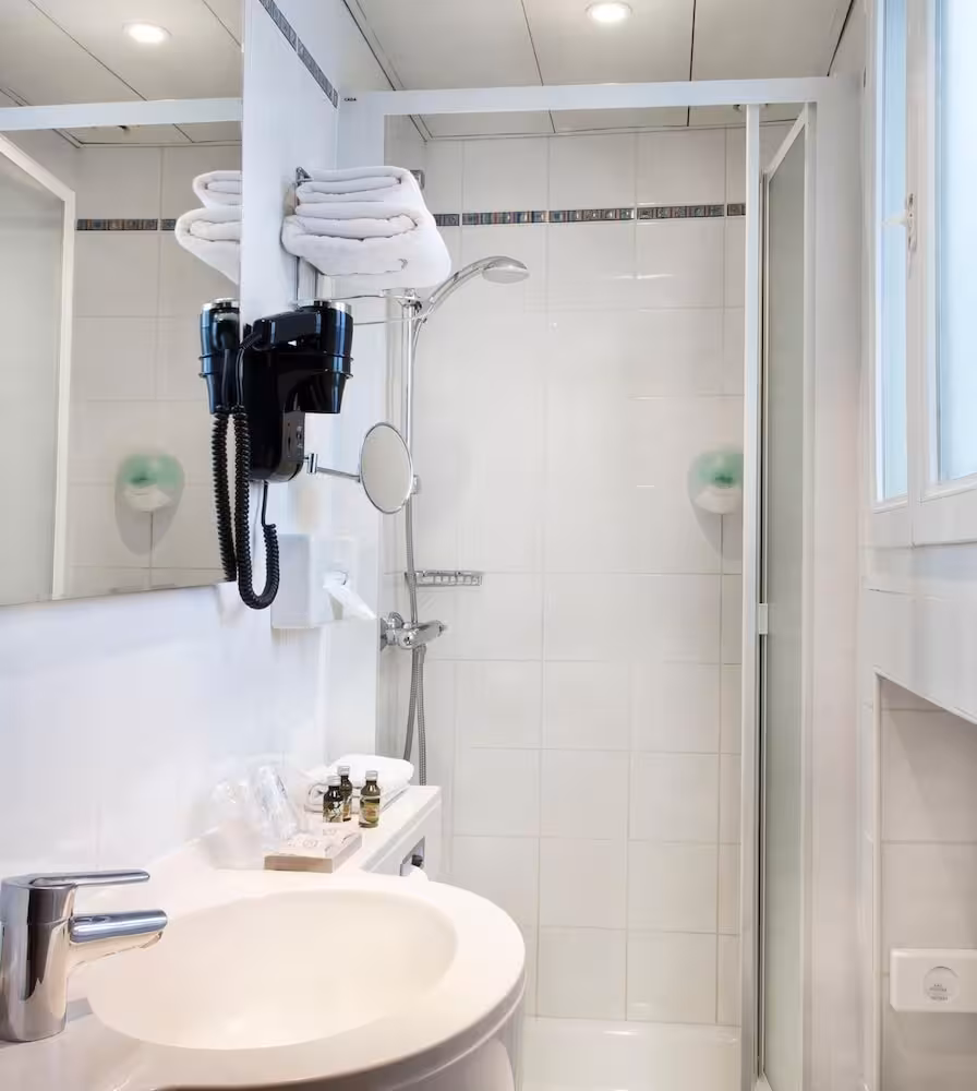 Air conditioning and central heating ensure that rooms maintain comfortable temperatures. Rooms have a double bed or a king-size bed. Extra beds can be requested. A safe, a minibar and a desk are also available. Guests will also find a tea/coffee station included among the standard features. An ironing set is provided for guests' convenience. A telephone, a TV, an alarm clock and WiFi (no extra charge) are provided as well. Bathrooms are equipped with a shower and include a hairdryer. As a special feature, bathrooms are also stocked with cosmetic products and a selection of towels. The hotel has non-smoking rooms.