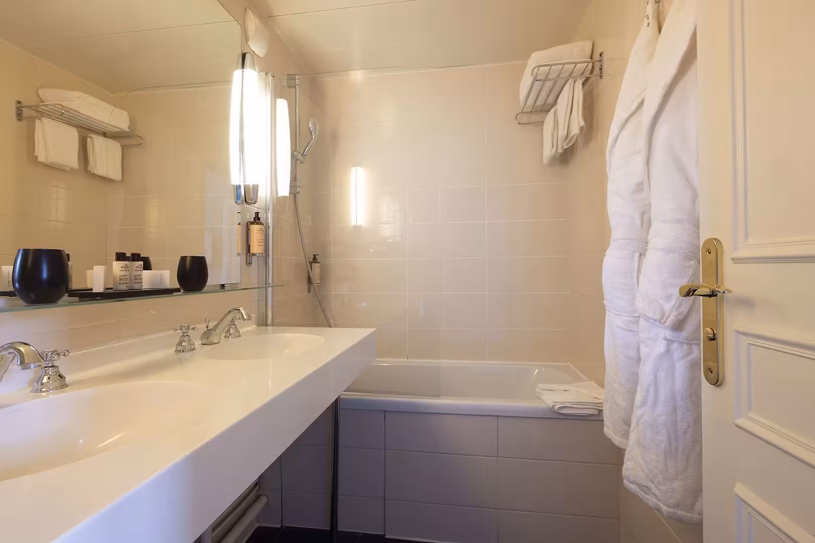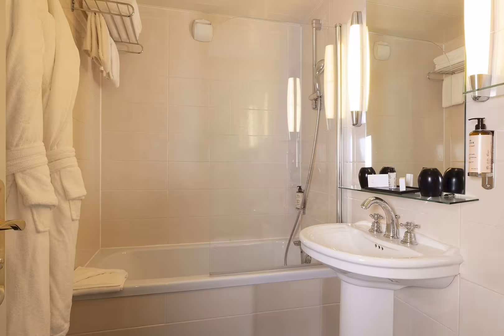 Air conditioning and central heating ensure that rooms maintain comfortable temperatures. A safe, a minibar and a desk are also available. Additional features include a refrigerator, a mini fridge and a tea/coffee station. An ironing set is provided for guests' convenience. Other features include a direct dial telephone, a TV and WiFi (no extra charge). Bathrooms are equipped with a shower and a bathtub, as well as a hairdryer. The hotel has family rooms and non-smoking rooms.