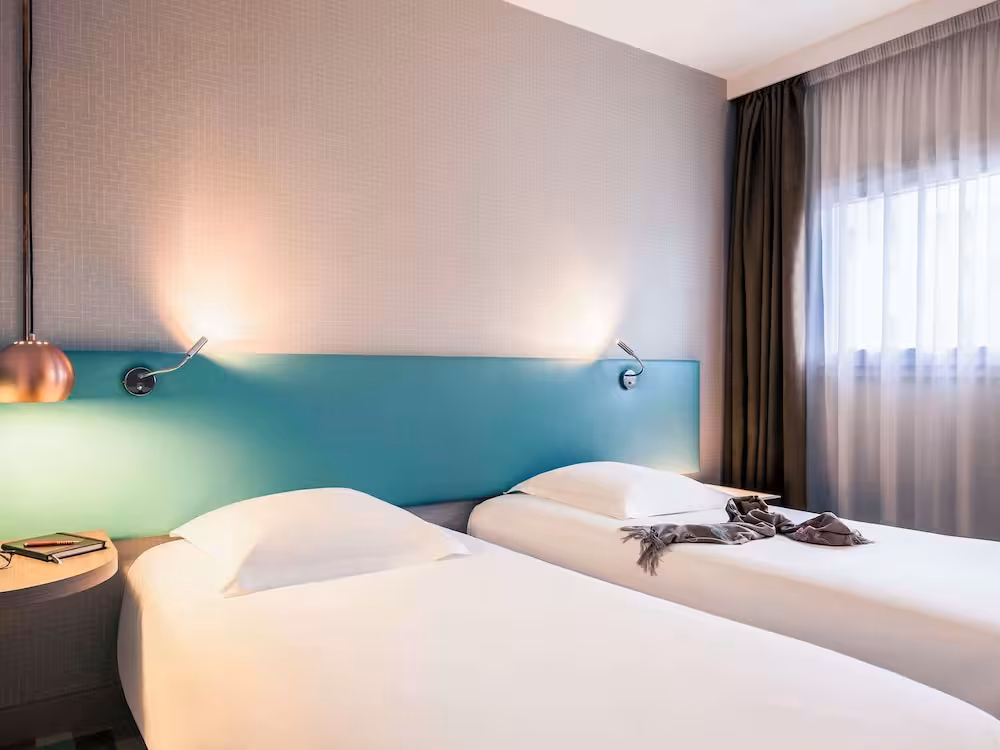 This hotel is ideally situated, just 5 minutes from Disneyland Resort Paris (2 stops by RER train) and 35 minutes from the centre of Paris, in the heart of Bussy-Saint-Georges, directly opposite the train station. It is a 5-minute drive to the Val d'Europe shopping centre and La Vallée Outlet Shopping Village. Its convenient location near to the A4 allows quick access to the Villepinte Exhibition Centre as well as to Porte de Bercy, Orly and Charles de Gaulle airports, each around 25 km away.
