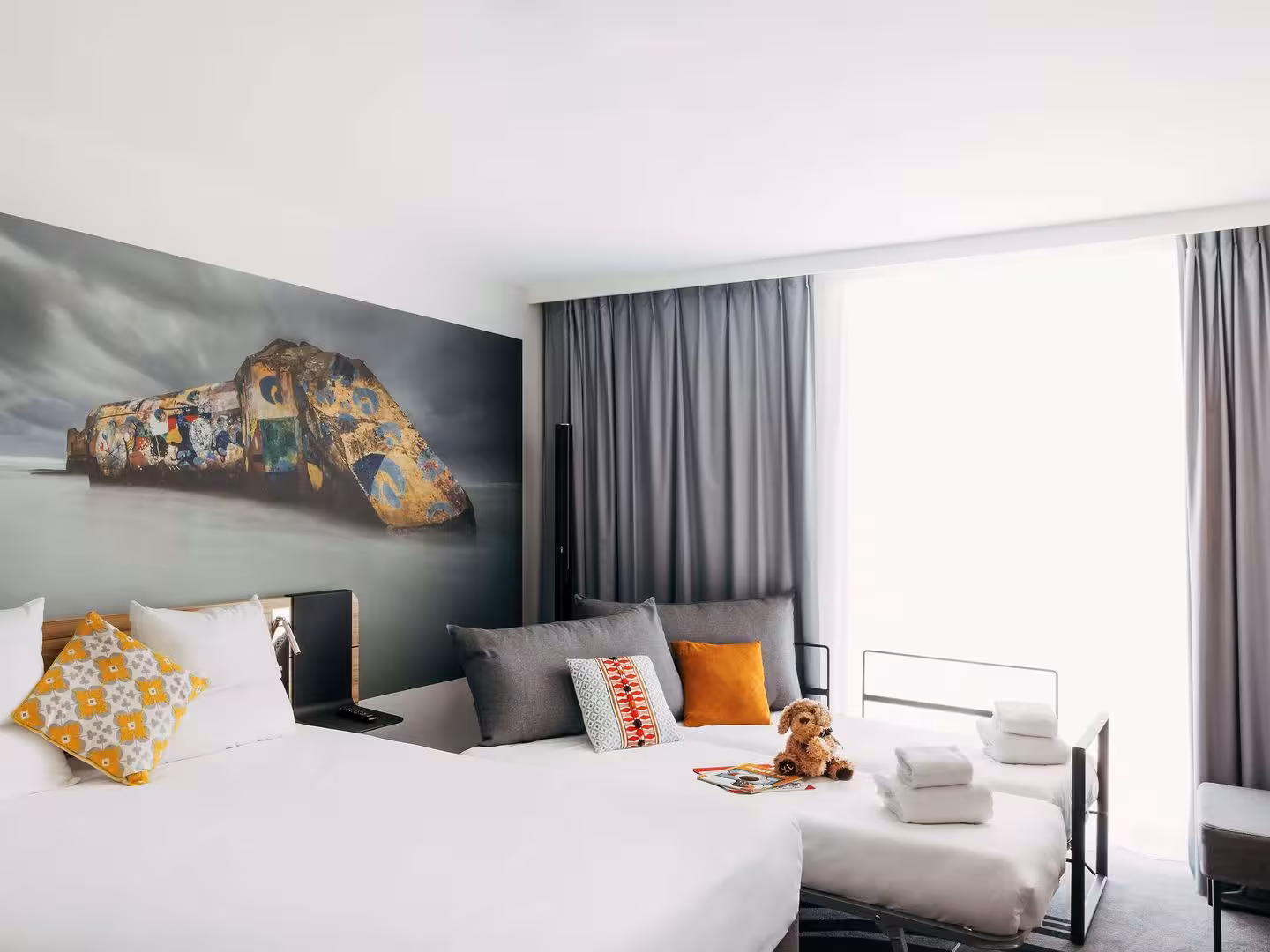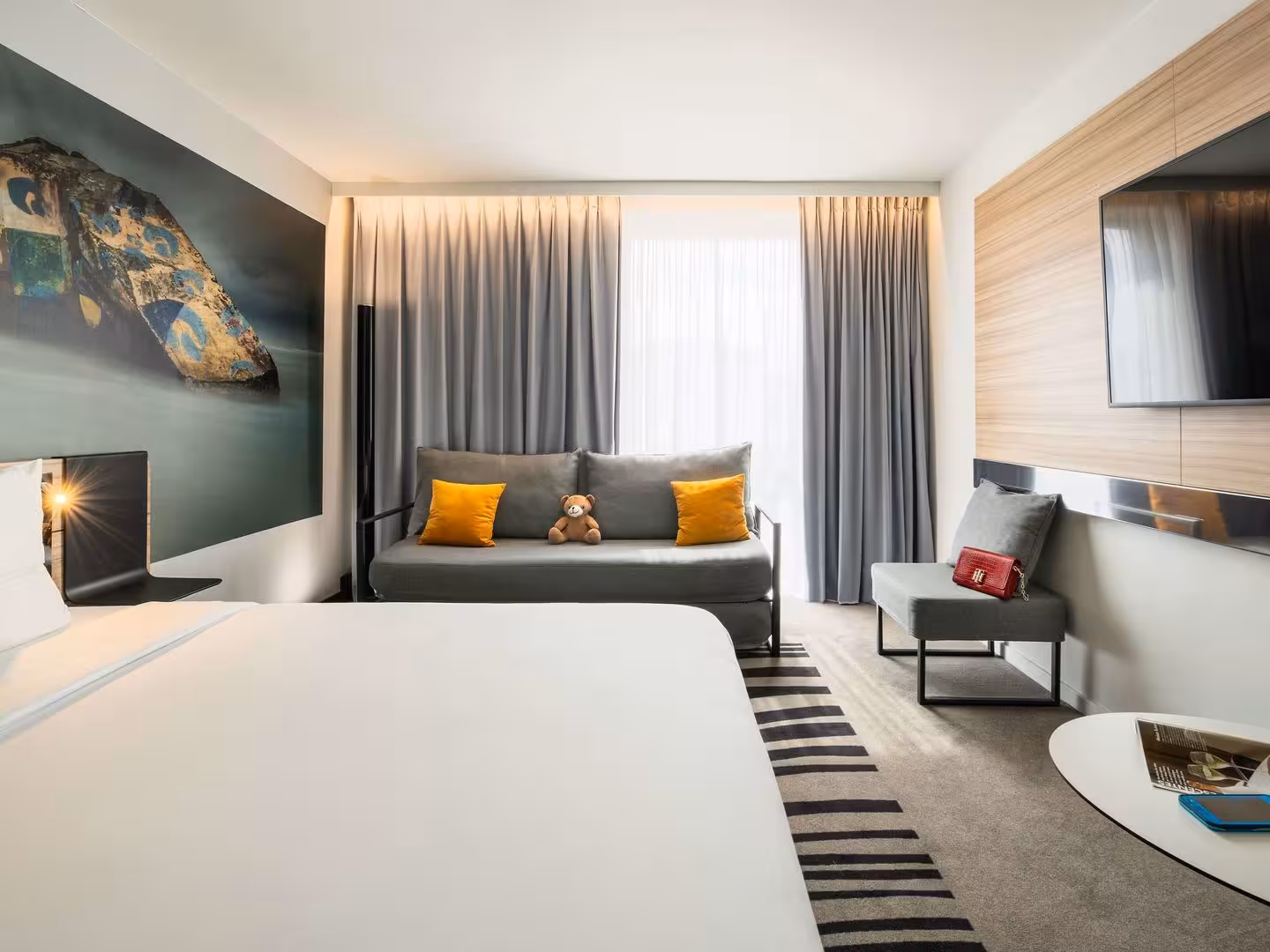 Rooms are equipped with air conditioning and central heating. All rooms are carpeted and include a double bed and a sofa bed. Extra beds can be requested. A safe and a minibar are also available. Guests will also find a tea/coffee station included among the standard features. A telephone, a TV, an alarm clock and WiFi ensure optimal comfort. Guests will also find slippers in their rooms. Bathrooms are equipped with a shower and include a hairdryer. As a special feature, bathrooms are also stocked with cosmetic products and a selection of towels. Wheelchair-friendly rooms with wheelchair-accessible bathrooms are also available. The hotel has family rooms and non-smoking rooms.