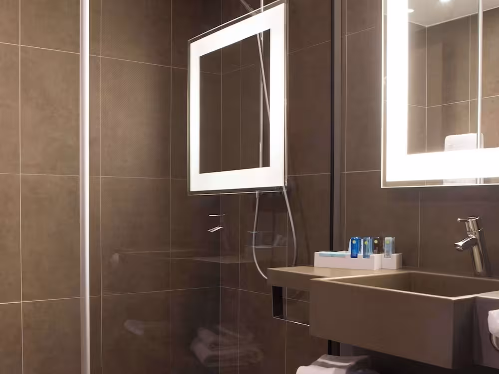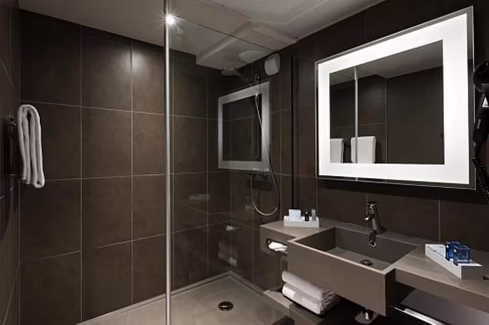Rooms are equipped with air conditioning and central heating. Rooms have a queen-size bed or a sofa bed. Extra beds can be requested. A safe, a minibar and a desk are also available. Additional features include a mini fridge and a tea/coffee station. An ironing set is provided for guests' convenience. A telephone, a TV, a radio and WiFi (no extra charge) are provided as well. Bathrooms are equipped with a shower and a bathtub, as well as a hairdryer. For extra comfort in the bathrooms, guests are offered cosmetic products. Guests can also book wheelchair-friendly rooms with wheelchair-accessible bathrooms. The hotel has family rooms and non-smoking rooms.
