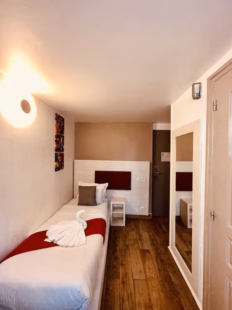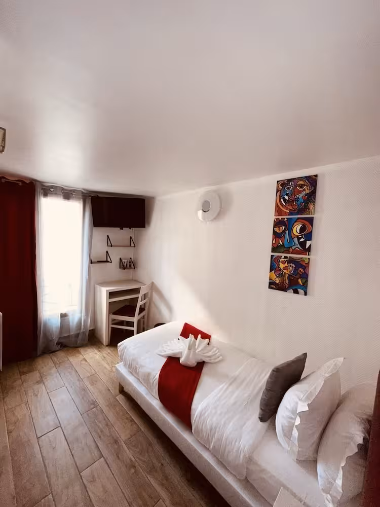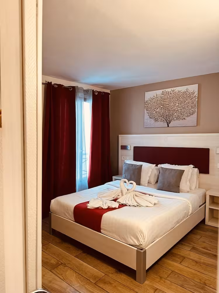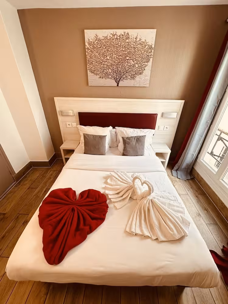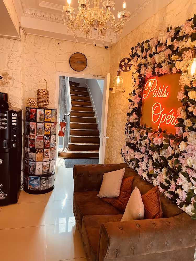 This hotel is ideally located on a small, quiet street in the 9th arrondissement close to the Galeries Lafayette and the Opéra Garnier. Links to the public transport network are within easy reach. It is only a few minutes' walk to the busy shopping streets with their typically Parisian shops. Montmartre, a district made famous by its many painters, is also a short walk away and it is possible to pay a visit to the basilica of Sacré Coeur from whence panoramic views may be enjoyed out over the city. It is just a few metro stops to one of the most beautiful avenues in the world, the Champs Elysées.