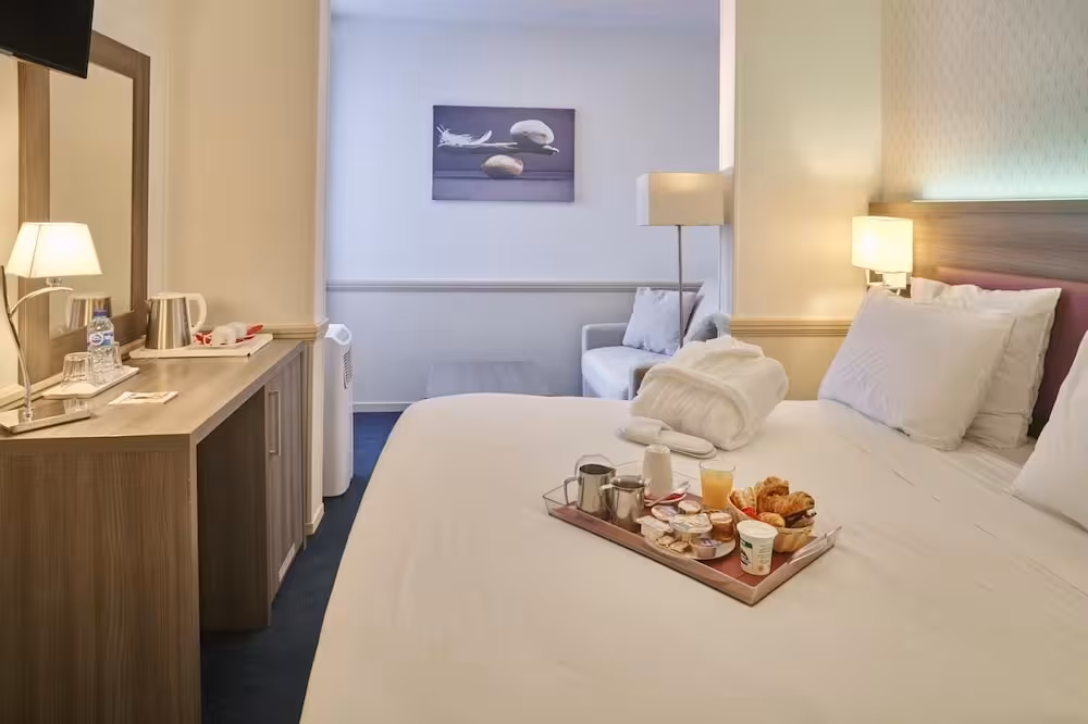 Central heating ensures that rooms maintain just the right temperature. A balcony is included as standard in some rooms. Rooms have a double bed or a king-size bed. Extra beds can be requested. A safe, a minibar and a desk are also available. Additional features include a refrigerator, a mini fridge and a tea/coffee station. An ironing set is provided for guests' convenience. A direct dial telephone, a television with satellite/cable channels, a DVD player and WiFi (no extra charge) are provided as well. Bathrooms are equipped with a shower and a bathtub, as well as a hairdryer. For extra comfort in the bathrooms, guests are offered cosmetic products. The hotel has family rooms and non-smoking rooms.