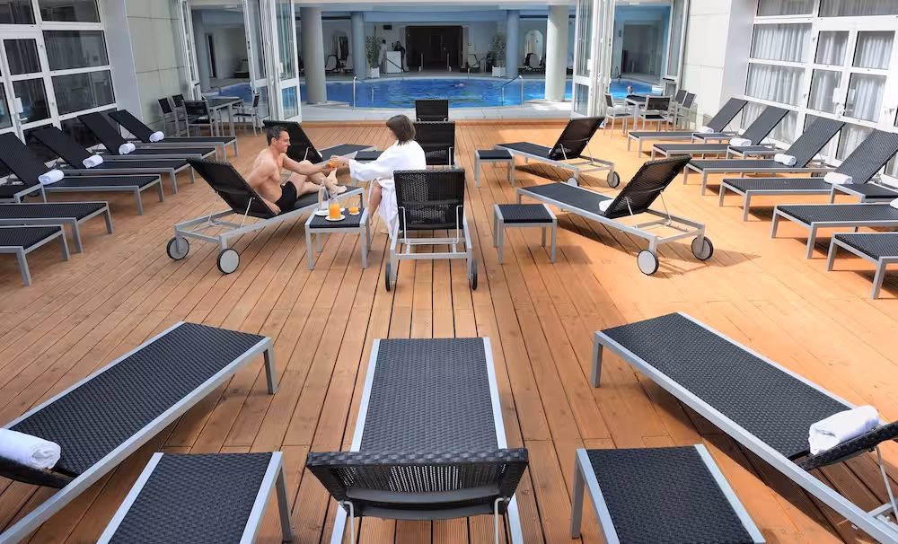 The pool complex ensures comfortable swimming with its indoor and outdoor pools and pleasantly heated water. Children can enjoy a special swimming area just for them. Guests can treat themselves to refreshing drinks at the poolside snack bar and a relaxing soak in the hot tub. A short break or an entire afternoon on the sun terrace, which features sun loungers and parasols, is time well spent. A wide range of sports and activities are offered at the hotel, such as tennis. For a fee, guests can also enjoy cycling/mountain biking, golf and horse riding. Guests can enjoy a wide range of indoor sports, including a gym, billiards, yoga and aerobics. Various wellness options are available at the hotel, including a spa, a sauna, a steam bath, a hammam, a beauty salon, massage treatments and a solarium. A kids' club and a casino are also options for entertainment.