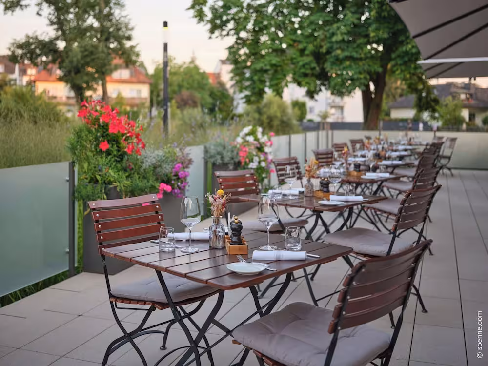 Fine weather can be enjoyed on the terrace. After an eventful day, guests can work out and recharge in the gym.