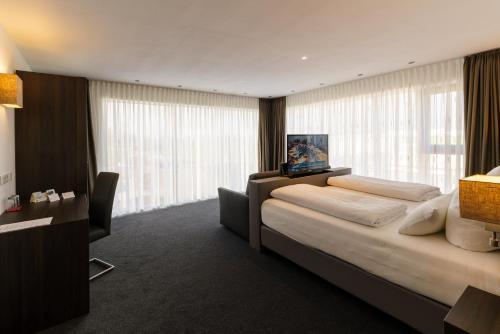 Central heating ensures that rooms maintain comfortable temperatures. The rooms have a king-size bed and a sofa bed. Extra beds can be requested. A telephone and WiFi (no extra charge) also come standard in the rooms. Bathrooms are equipped with a shower. Guests can also book wheelchair-friendly rooms with wheelchair-accessible bathrooms. The hotel has family rooms and non-smoking rooms.