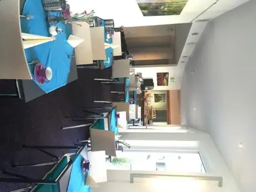 The dining area includes a restaurant and a dining room. Breakfast and lunch are served every day. Special meals, including diet meals, are also available. The hotel also offers special catering options.