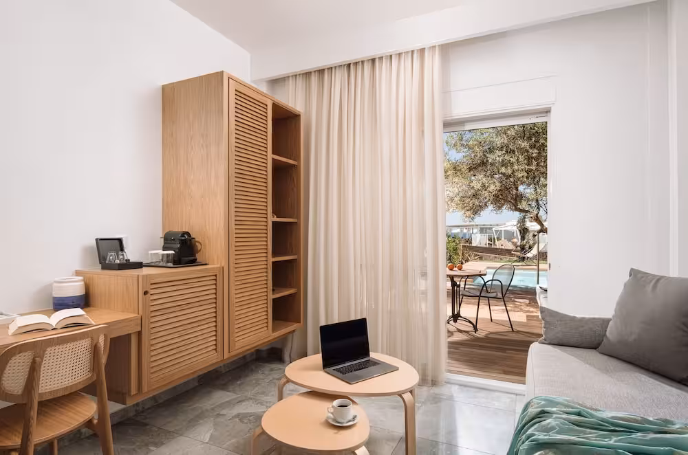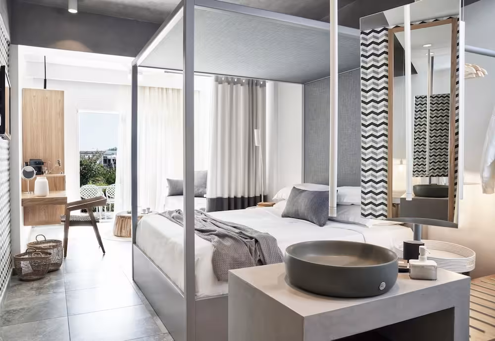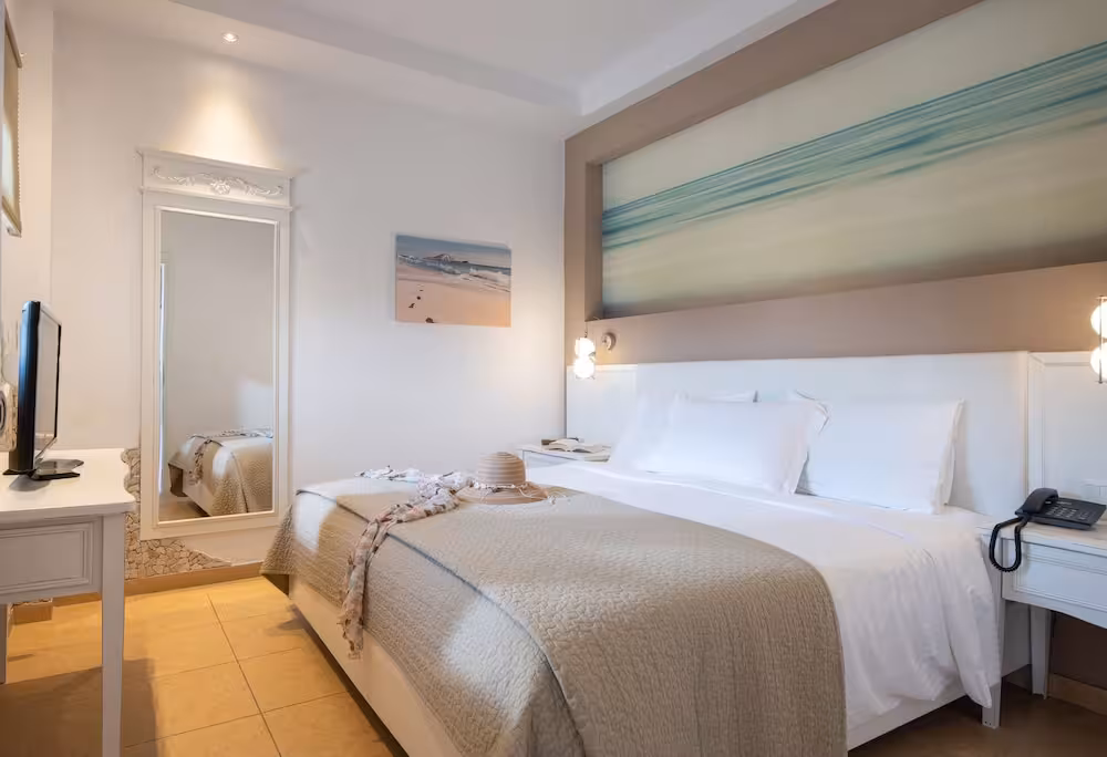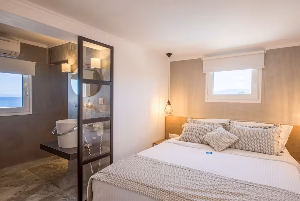 Rooms are equipped with air conditioning and central heating. Guests can relax and enjoy the sea views from the balcony or private terrace of some rooms. Rooms have a double bed, a queen-size bed, a king-size bed or a sofa bed. Separate bedrooms are available. Children's beds and extra beds can be requested for younger guests. A safe, a minibar and a desk are also available. For guests' convenience, units include a refrigerator and a tea/coffee station. A telephone, a TV, a CD player and WiFi (no extra charge) provide all the essentials for a comfortable holiday. Guests will also find slippers in their rooms. Amenities in the bathrooms include a shower. A hairdryer, a vanity mirror and bathrobes are available for daily use. The resort has family rooms and non-smoking rooms.