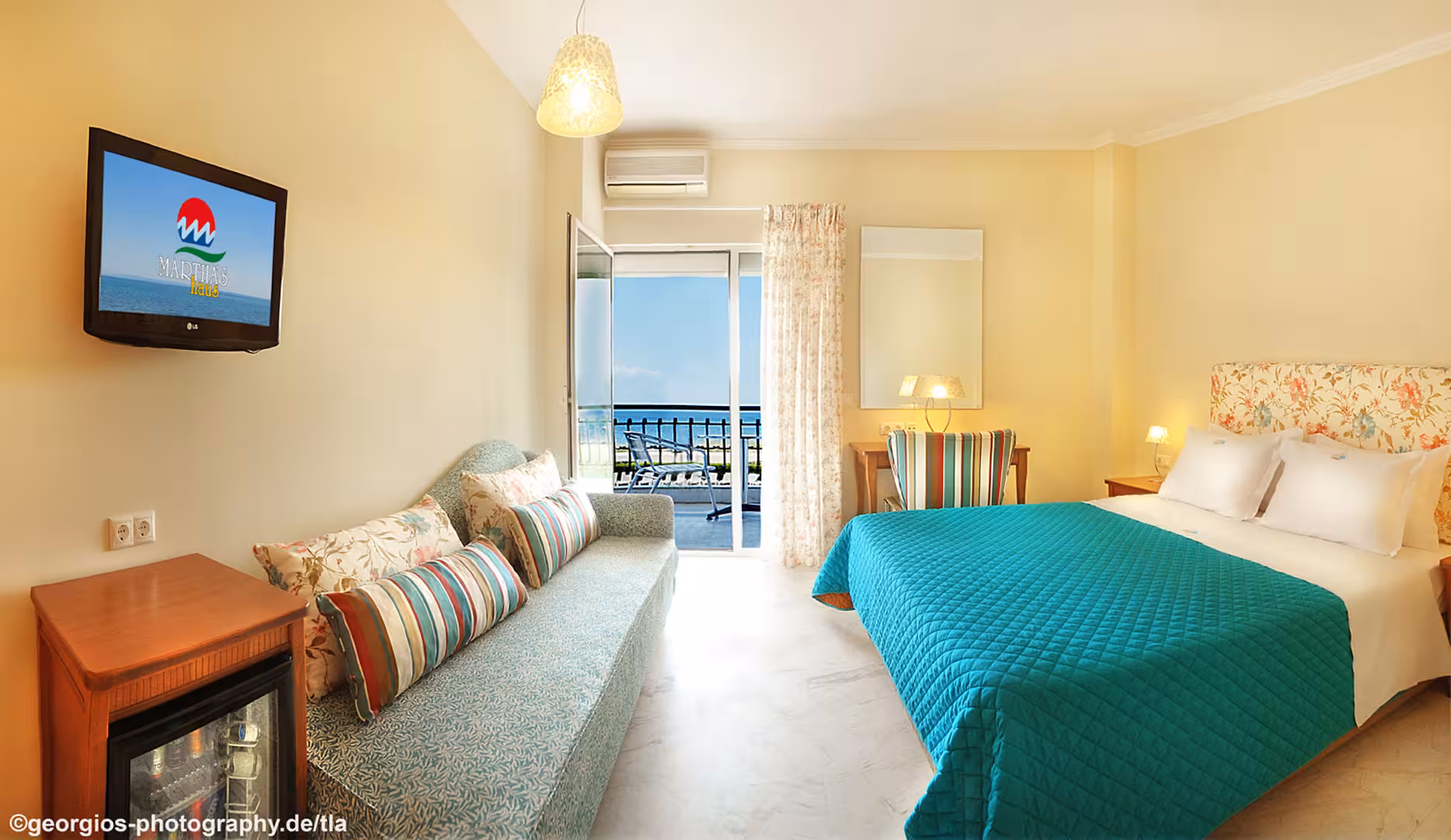 Rooms are equipped with air conditioning. Guests can enjoy the sea view from a balcony or terrace. The rooms have a double bed and a sofa bed. Separate bedrooms are available. Children's beds can be requested for younger guests. There is also a safe and a desk or, for an additional fee, a minibar. A refrigerator, a mini fridge and a tea/coffee station are standard features. A telephone, a TV, a radio and WiFi (no extra charge) are provided as well. Bathrooms are equipped with a shower, a bathtub and a whirlpool bath. For additional convenience, bathrooms also provide a hairdryer. The hotel has family rooms and non-smoking rooms.