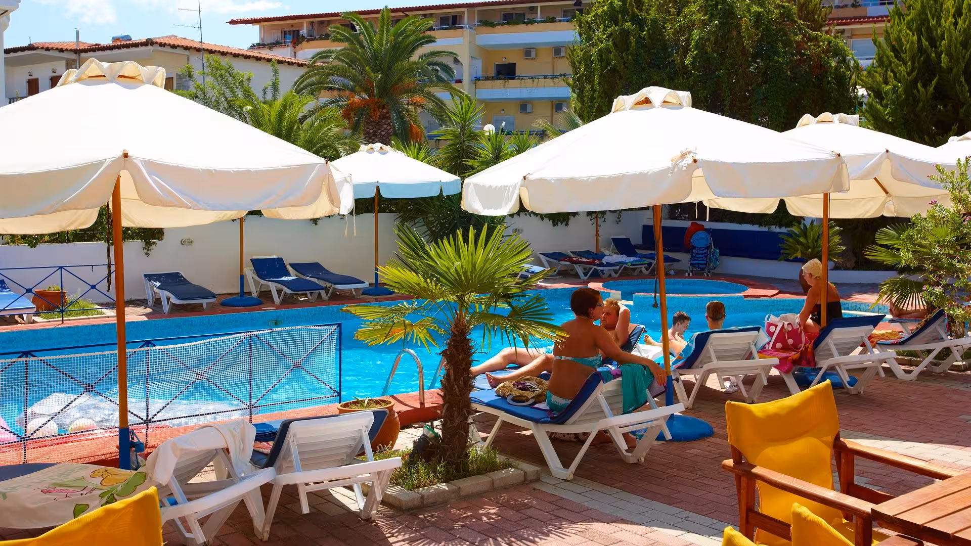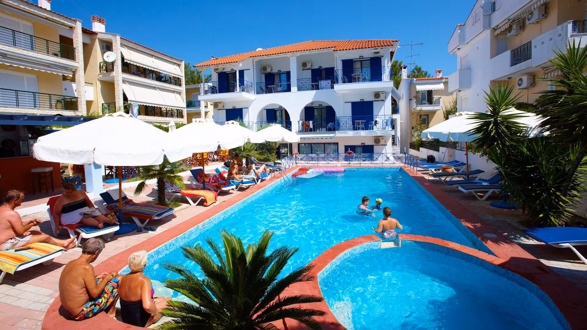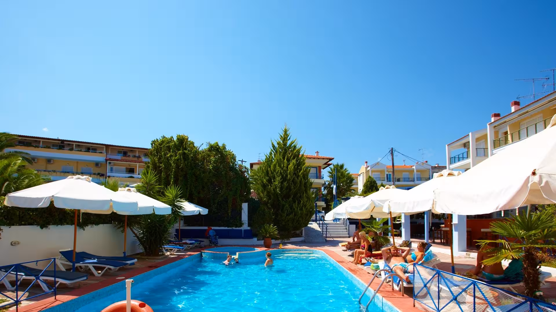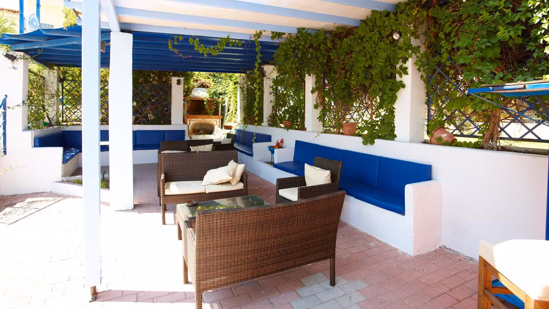 This hotel welcomes guests in Hanioti.