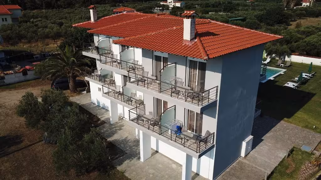 This hotel warmly welcomes guests in Sarti.