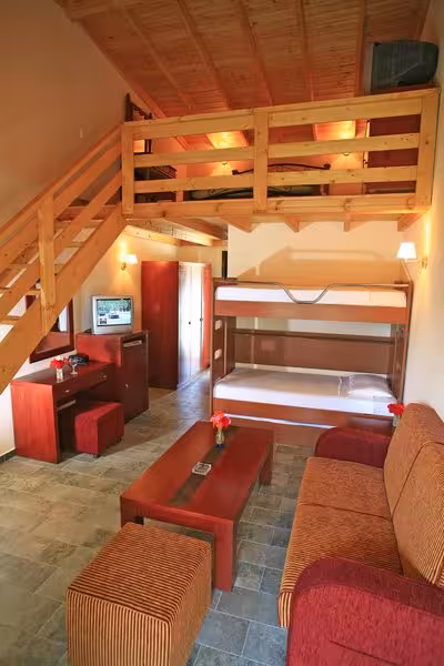 Whether more active or in need of rest and relaxation, guests can unwind at the pool complex, which includes a children's area and a total of 3 swimming pools. A short break or an entire afternoon on the sun terrace, which features sun loungers and parasols, is time well spent. Refreshing drinks are served at the poolside snack bar. The hotel offers a wide range of outdoor sports, including tennis, beach volleyball and golf. For a fee, guests can also enjoy cycling/mountain biking. Water sports enthusiasts are offered paddle boating. The apartment hotel offers numerous indoor sports, including a gym, table tennis and darts or, for a fee, billiards. A spa and a sauna are available in the wellness area. Entertainment options and leisure facilities include an entertainment programme and a kids' club.