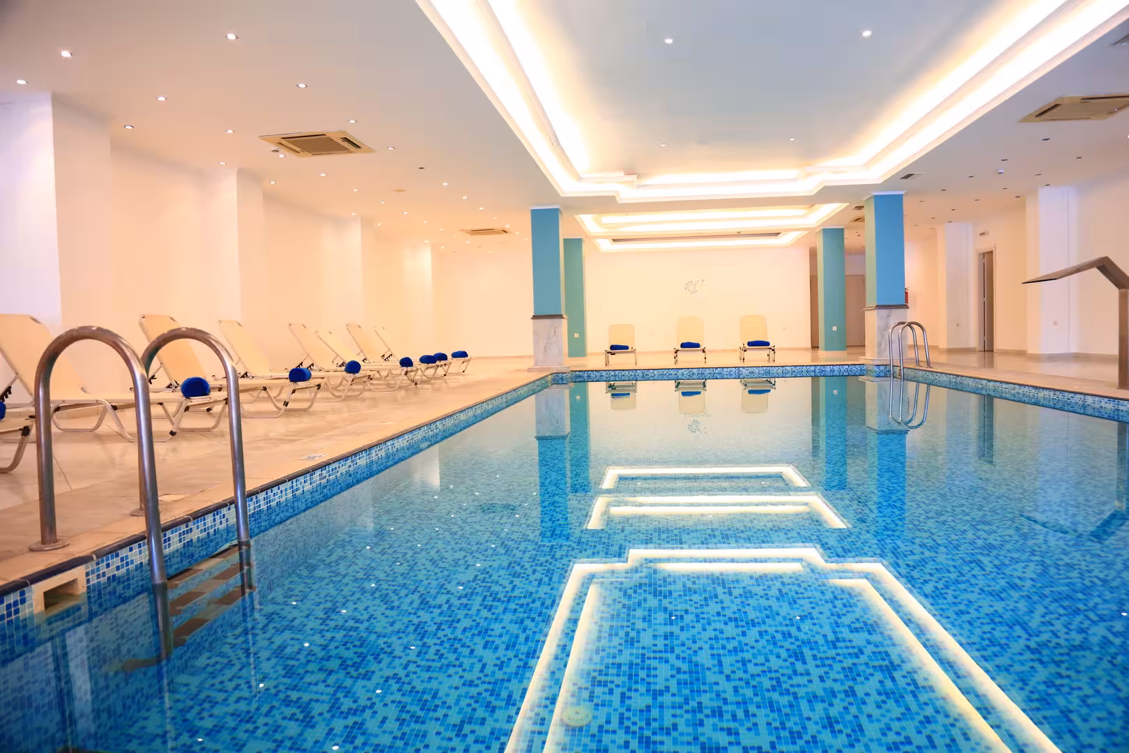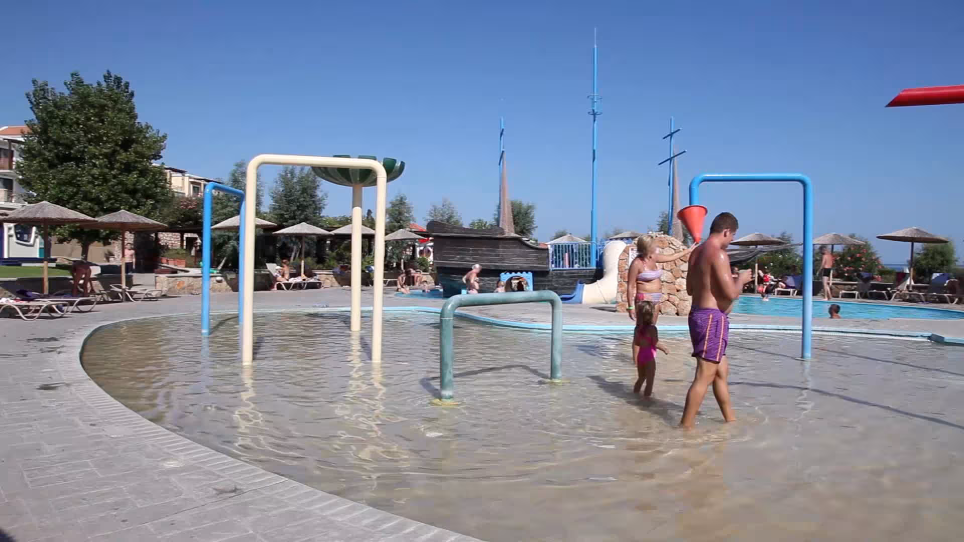 Plenty of active recreation awaits guests in the pool area's 5 outdoorpools. No matter the weather, swimming is always a possible in the indoor pool. There is also a special swimming area just for kids. Fun on the waterslide and a relaxing soak in the hot tub offer the perfect way to unwind. Guests can relax and enjoy the sun loungers and parasols provided. For guests who wish to keep active, bocce, beach volleyball and basketball are available. The water sports offered include water aerobics. Sports enthusiasts are also offered a wide range of indoor activities, including a gym, table tennis, darts and aerobics. There is a wellness area with a spa, a sauna and a solarium and, for an additional fee, a beauty salon and massage treatments. Leisure facilities include an entertainment programme, a dance club and a nightclub.