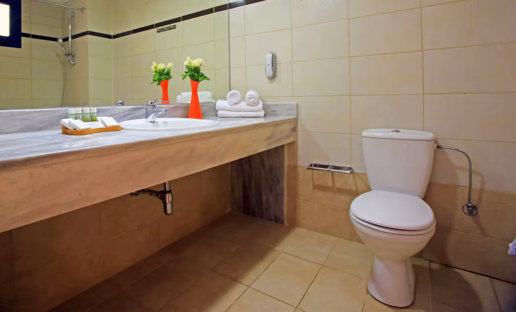 Rooms are equipped with air conditioning and central heating. Children's beds can be requested for younger guests. Valuables can be securely stored in a safe. Guests will also find a refrigerator included among the standard features. Satellite television and WiFi are provided as well. A hairdryer and a telephone are available in the bathrooms, which are equipped with a shower and a bathtub.