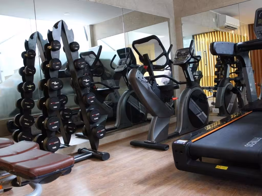 After an eventful day, guests can work out and recharge in the gym.