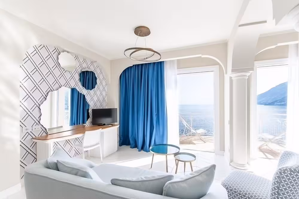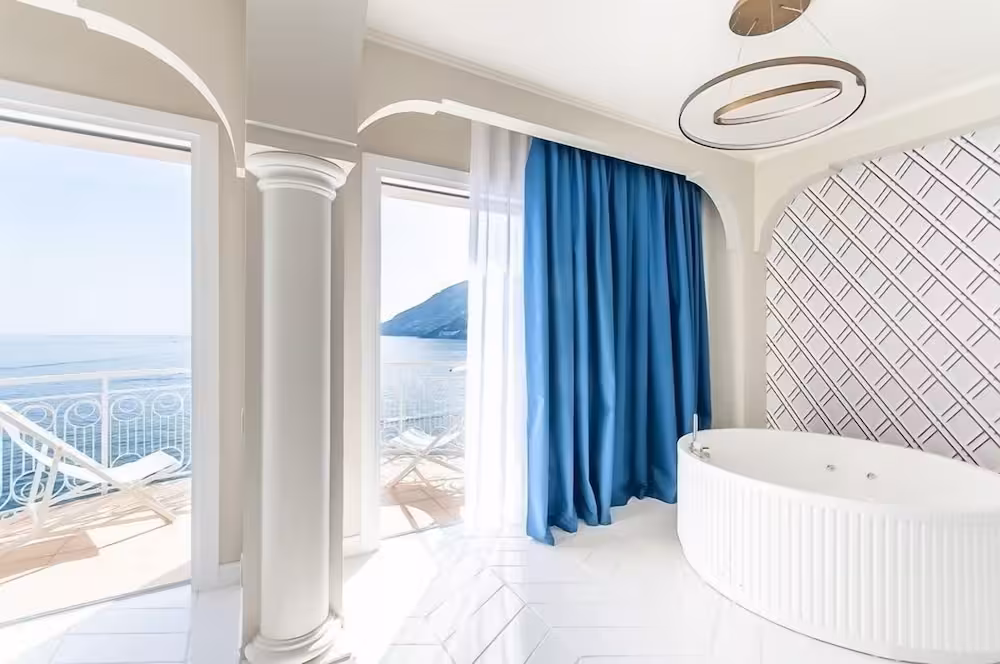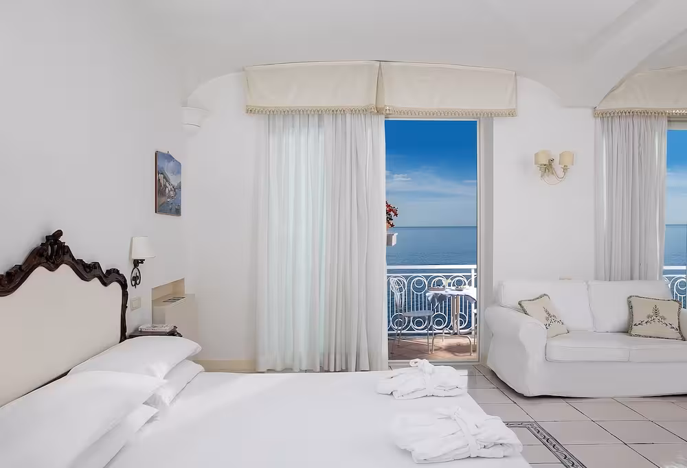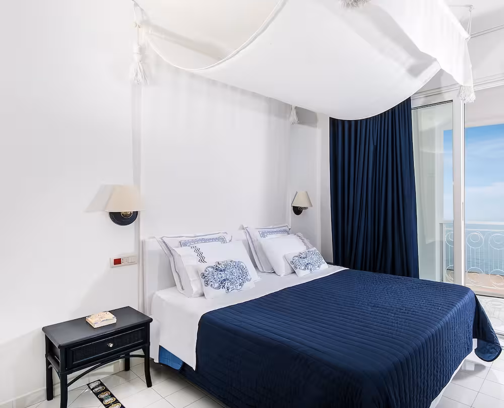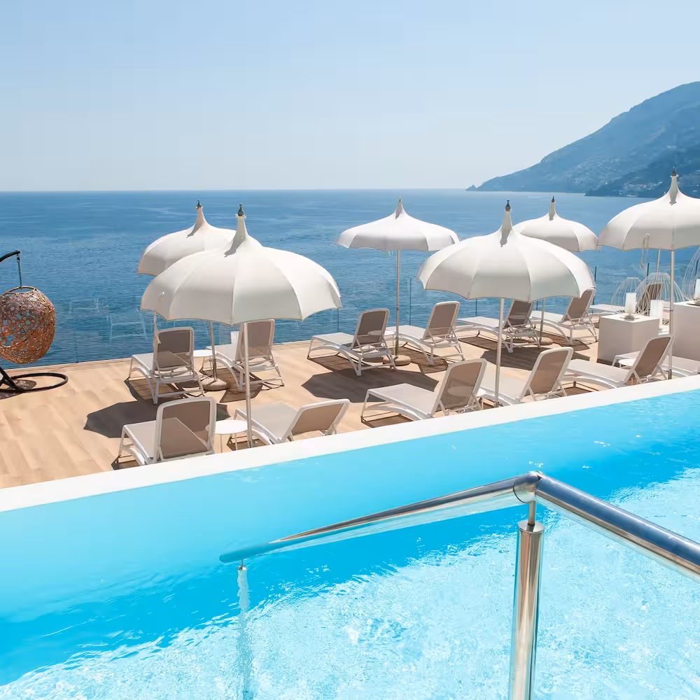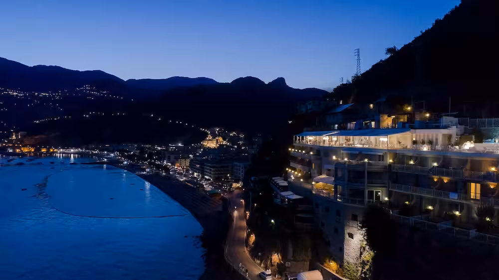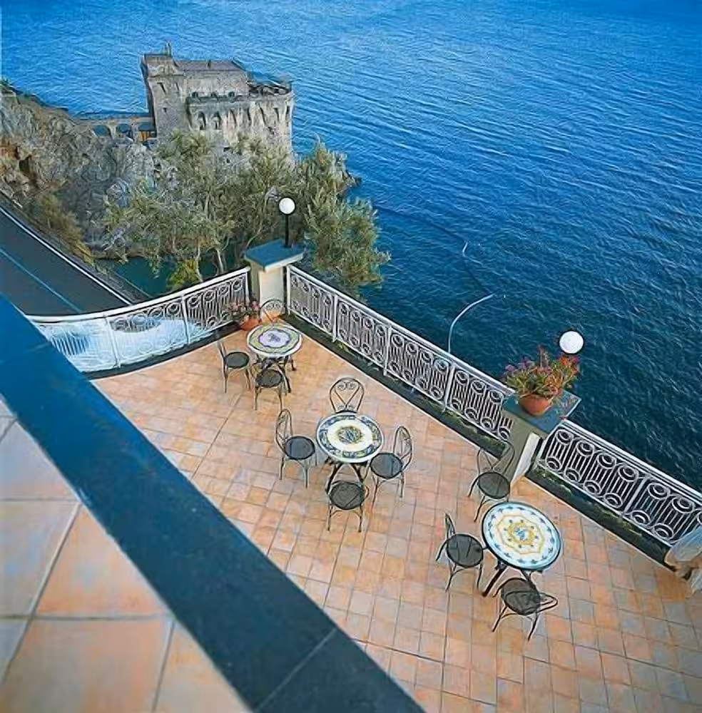 Set amidst the stunning landscape of the absolutely divine Amalfi coast, the hotel stands on a cliff top, towering over the sea. This enchanting health and beach resort overlooks the longest, most beautiful beach on the Amalfi coast. The Torre Normanna beach is about 50 m from the hotel. The castle ruins add to the mediaeval splendour. The church of S. Maria a Mare dominates the town and a collection of art is preserved in the sacristy museum and the crypt beneath it. The unusual stone complex of S.Maria Olearia, a Benedictine abbey built around the year 1000, is also worth a visit. The hotel is approximately 300 m from the centre of Maiori and around 5 km from Amalfi.