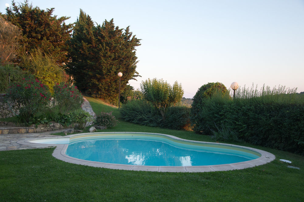 Guests can enjoy a refreshing swim in the outdoor pool area.