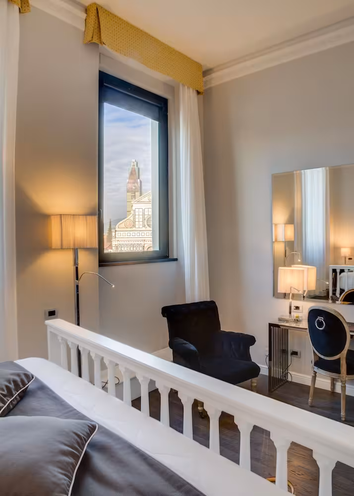The hotel is just a few steps away from the Cathedral of Santa Maria del Fiore (Duomo) with the Giotto Belltower, Ponte Vecchio (Old Bridge), Piazza della Signoria (Signoria Square), the Medicean district of San Lorenzo, the Lungarni and all the main Florentine monuments and museums in the vicinity. Furthermore, the hotel is near the central rail station and the congress, fair and exhibition centre (Palazzo dei Congressi and Fortezza da Basso). Restaurants, bars, nightlife, shopping opportunities and links to public transport can also be found in the immediate vicinity. It also offers easy access to Florence Airport (Amerigo Vespucci). Peretola Airport is only 5 km away. Galileo Galilei Airport is approximately 80 km away.