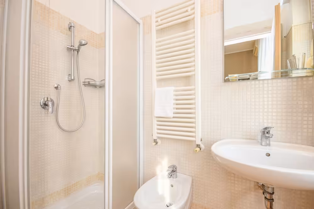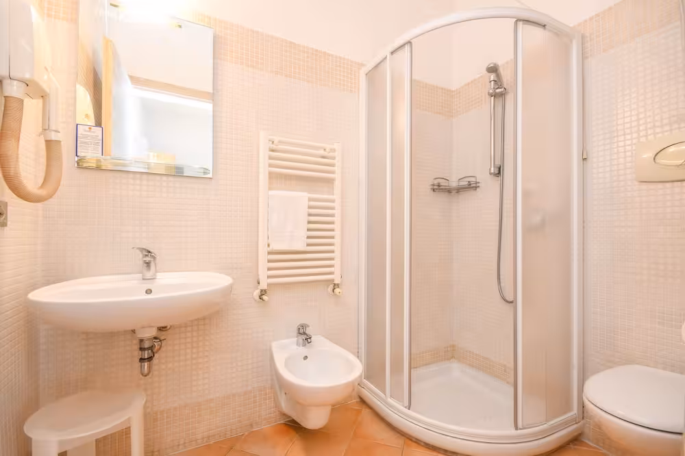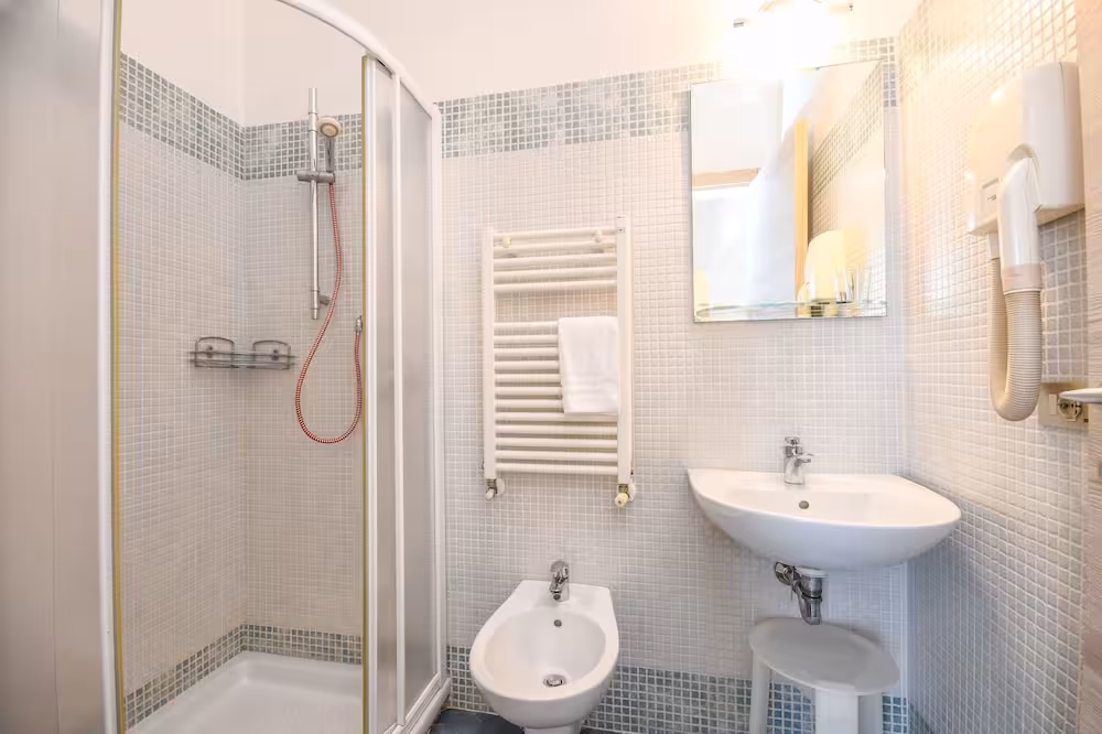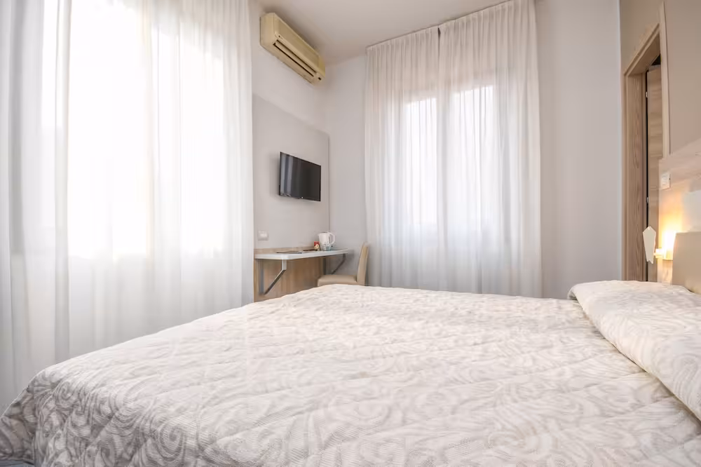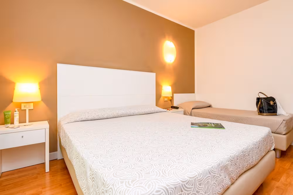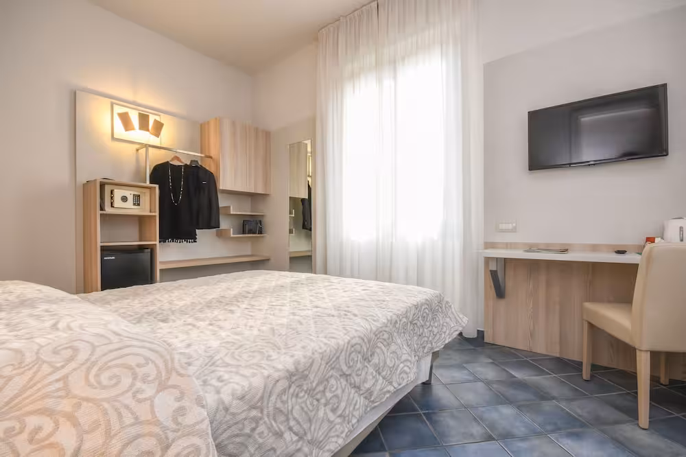 Air conditioning and central heating ensure that rooms maintain comfortable temperatures. A balcony is included as standard in some rooms. All rooms are carpeted and include a double bed. Extra beds can be requested. A safe and a desk are also available. A telephone, a TV and WiFi (no extra charge) provide all the essentials for a comfortable holiday. A shower, a bathtub and a bidet are included the bathrooms. A hairdryer is also provided. As an extra convenience, bathrooms provide cosmetic products. The hotel has family rooms and non-smoking rooms.