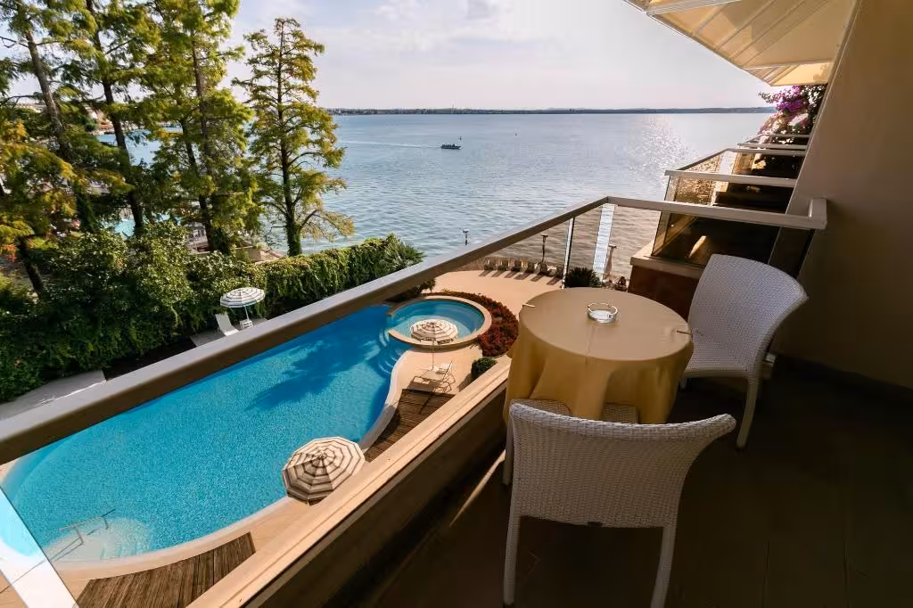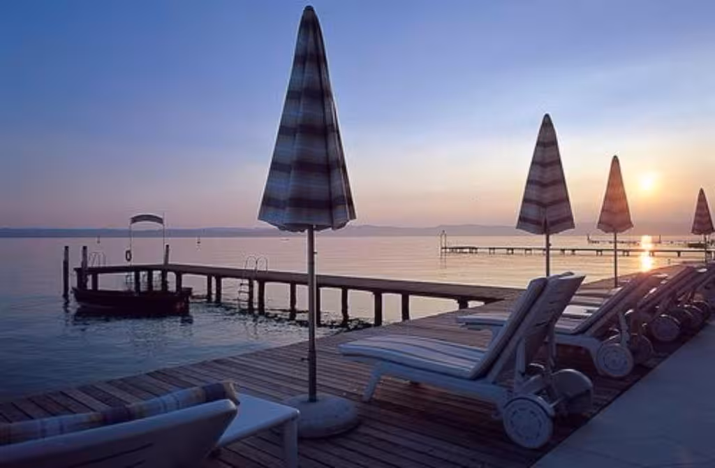 Centrally located in Sirmione, this hotel is right on the beach.