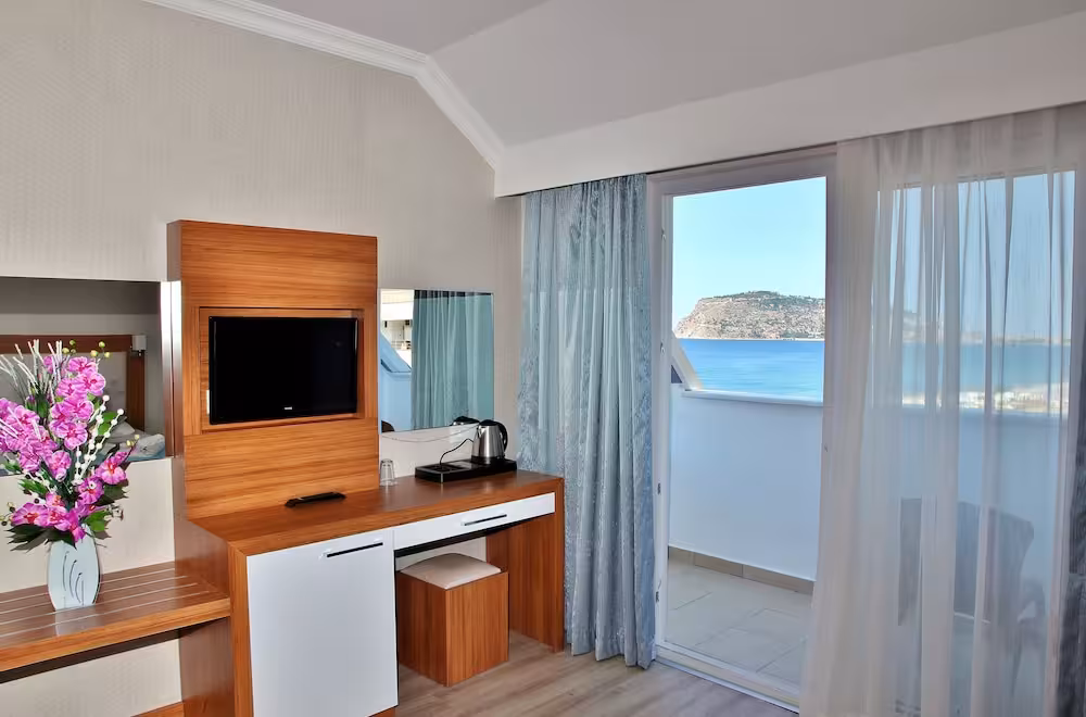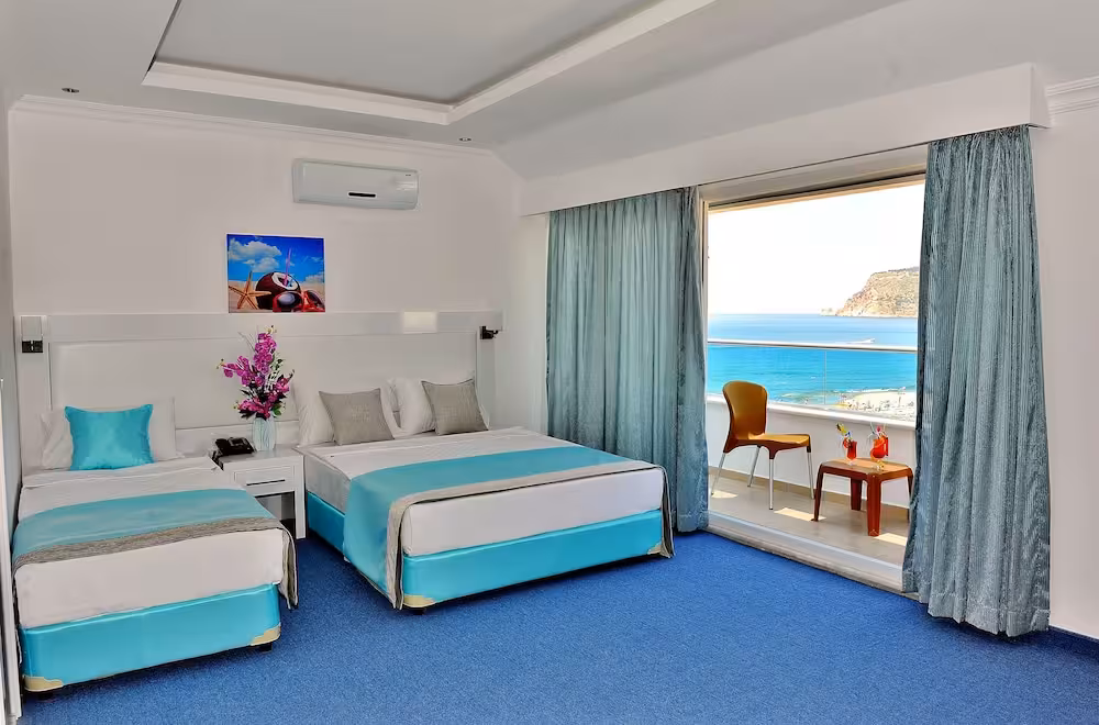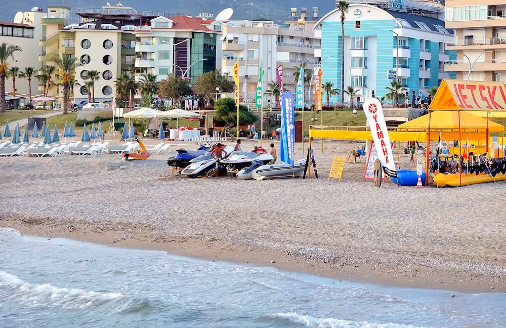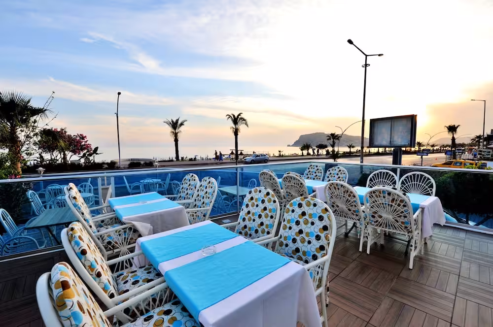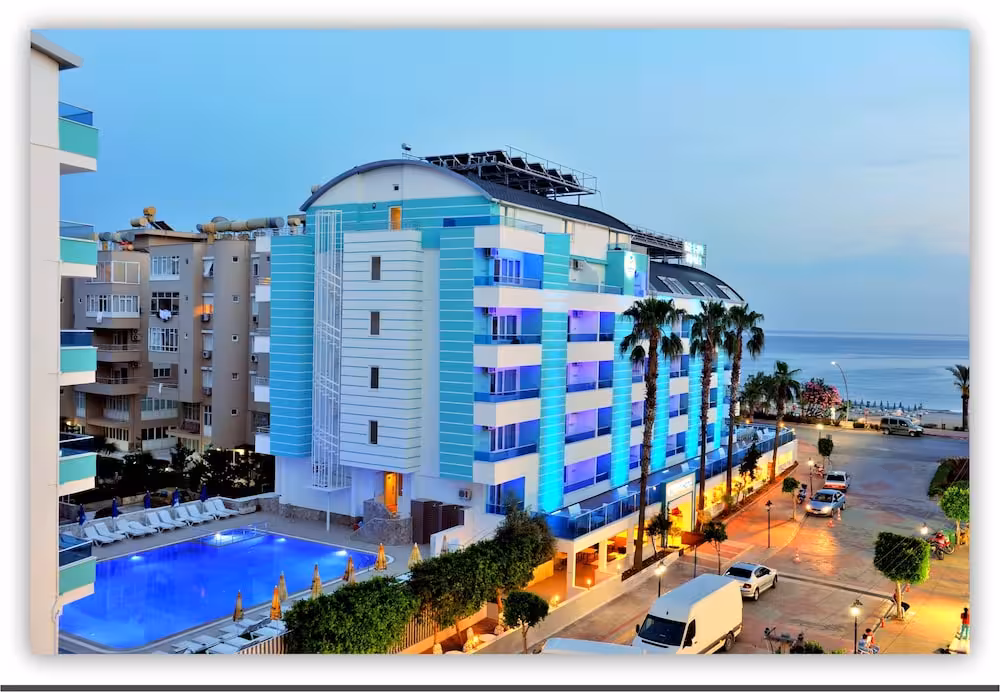 The hotel is located across the road from Alanya's beach. Public transport runs close by the hotel and there are some shops, cafes and restaurants within a few minutes' walk. Antalya Airport is approximately 120 km away.