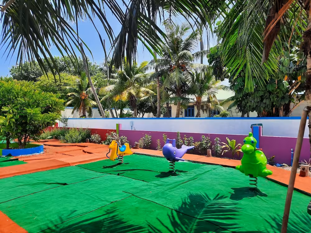 This hotel warmly welcomes guests in Maalhos.
