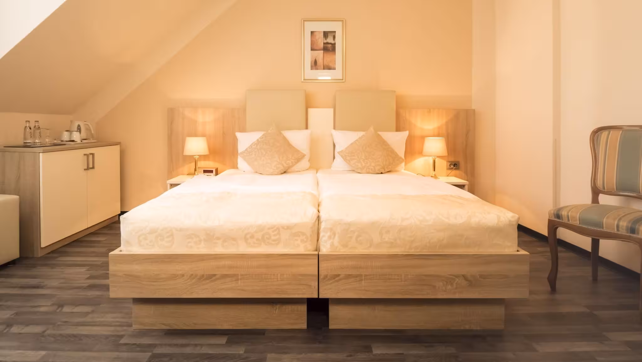 Central heating ensures that rooms maintain just the right temperature. A double bed ensures a good night's sleep. Guests will also find a tea/coffee station included among the standard features. A trouser press is provided for guests' convenience. Other features include a direct dial telephone, a TV and WiFi (no extra charge). Bathrooms are equipped with a shower and include a hairdryer. The hotel has family rooms and non-smoking rooms.