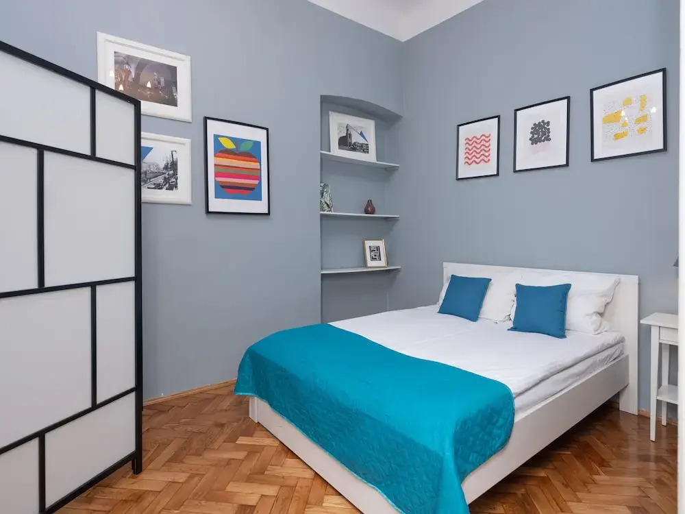 This apartment complex welcomes guests in Krakow.
