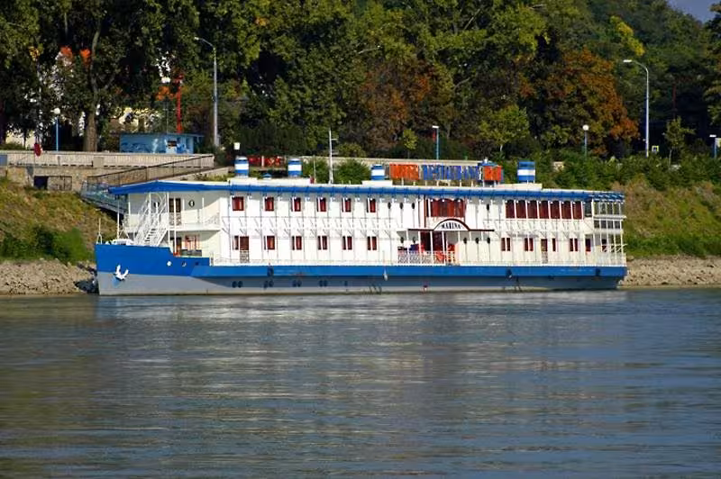 This is a floating hotel, harboured on the left bank of the River Danube in Bratislava. It offers a central location in a quiet part of town and lies in attractive surroundings, directly below Bratislava Castle. The atypical hotel is just 1 km from the historical old town and is ideally located close to the railway station, the shopping centre, the motorways and the exhibition centre. The immediate vicinity features restaurants, bars, pubs, nightlife spots and public transport links. St. Martin's Cathedral is just 800 m away and the old town hall is 2 km from the hotel. Vienna is some 60 km away, and M. R. Štefánik Airport lies just 15 km from the accommodation.