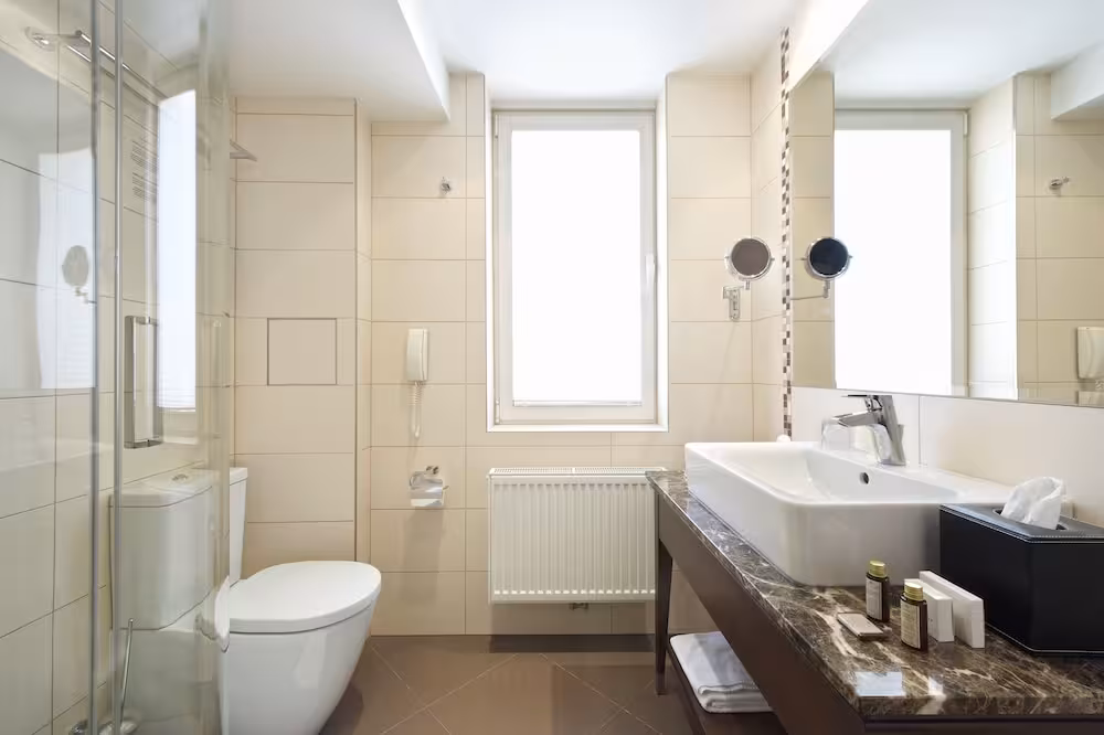 Air conditioning and central heating ensure that rooms maintain comfortable temperatures. A balcony is included as standard in some rooms. All rooms are carpeted and include a double bed or a king-size bed. Extra beds can be requested. A safe, a minibar and a desk are also available. Additional features include a mini fridge and a tea/coffee station. An ironing set is provided for guests' convenience. A direct dial telephone, a television with satellite/cable channels, a radio and WiFi (no extra charge) are provided as well. Cleaning on departure is among the services offered. Bathrooms are equipped with a shower and a bathtub, as well as a hairdryer. For extra comfort in the bathrooms, guests are offered cosmetic products. Guests can also book wheelchair-friendly rooms with wheelchair-accessible bathrooms. The hotel has family rooms, non-smoking rooms and 1 smoking room.