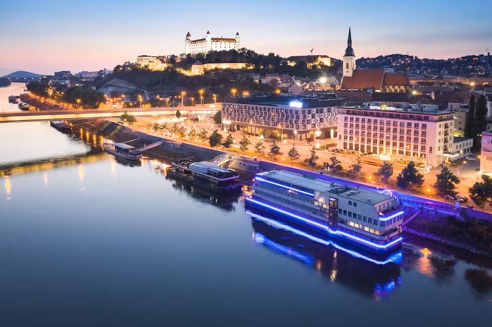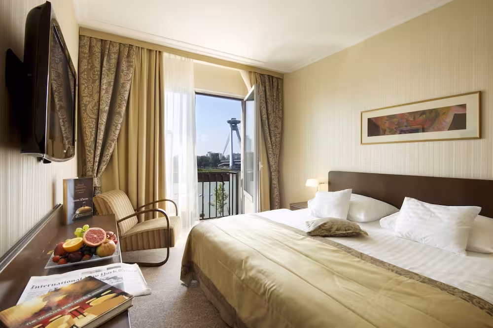 The hotel is located directly in the historic centre of Bratislava, on the bank of the Danube River. Countless shopping venues, lively bars and nightclubs, restaurants and links to the public transport network are to be found in the vicinity (50 m - 500 m). The National Gallery is only 50 m away and St. Martin's Cathedral is 400 m away. Only 2 km from the hotel, guests will find the Incheba Exhibition Centre.