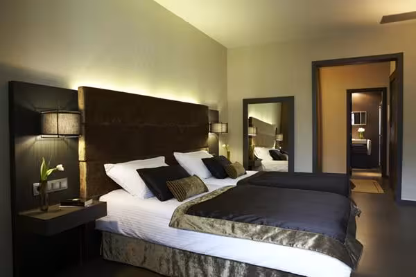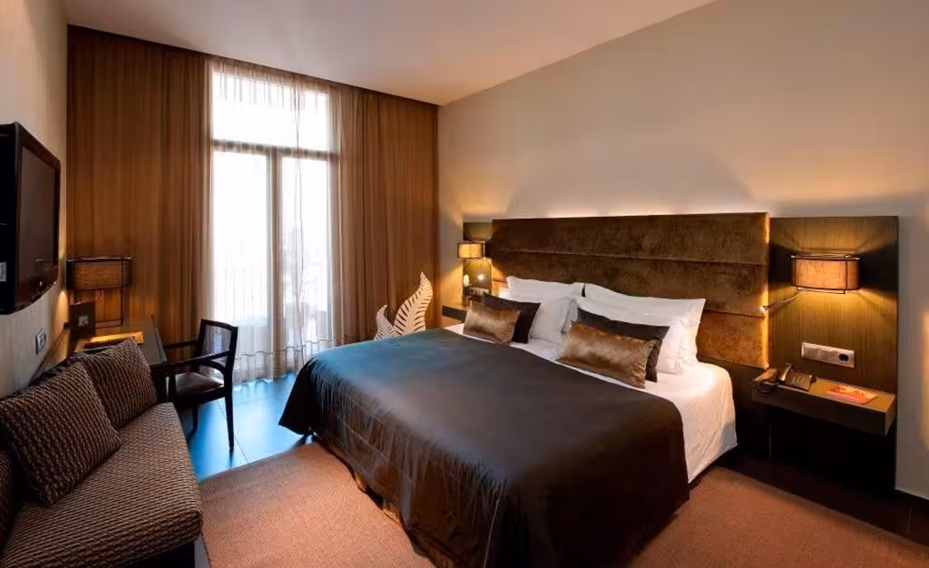 Rooms are equipped with air conditioning and central heating. Guests can enjoy the view of the courtyard from a balcony or terrace. The rooms have a king-size bed and a sofa bed. Extra beds can be requested. A safe, a minibar and a desk are also available. Guests will also find a refrigerator included among the standard features. There is also an ironing set and a trouser press. A telephone, satellite television, a radio and WiFi (no extra charge) ensure optimal comfort. A hairdryer and a telephone are available in the bathrooms, which are equipped with a shower and a bathtub. As an extra convenience, bathrooms provide cosmetic products. Wheelchair-friendly rooms can be booked. The hotel has family rooms and non-smoking rooms.