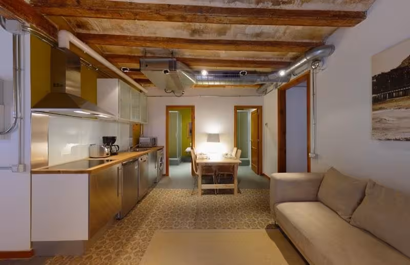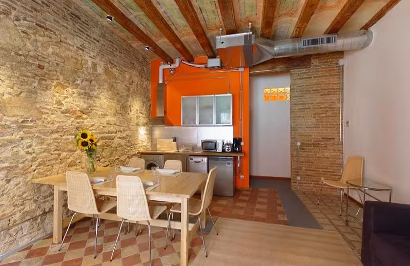 This complex is located in the district of Raval, surrounded by bars and nightspots and only a 10-minute walk from Las Ramblas, Plaza Catalunya and the Gothic Quarter. The closest metro station is Liceu and it is just a 15-minute walk from Barceloneta beach and Port Vell Harbour. Barcelona Airport is 13 km away.