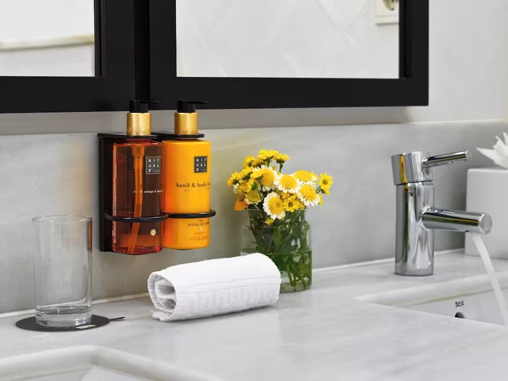 Rooms are equipped with air conditioning and central heating. A balcony or terrace is a standard feature of some rooms. Rooms have a double bed, a queen-size bed, a king-size bed or a sofa bed. Extra beds can be requested. A safe, a minibar and a desk are also available. Guests will also find a tea/coffee station included among the standard features. An ironing set is provided for guests' convenience. A telephone, satellite television, a radio, a plug adapter, an alarm clock and WiFi (no extra charge) are provided as well. Slippers are included. A hairdryer and bathrobes are available in the bathrooms, which are equipped with a shower and a bathtub. As a special feature, bathrooms are also stocked with cosmetic products and a selection of towels. Wheelchair-friendly rooms with wheelchair-accessible bathrooms are also available. The hotel has non-smoking rooms.