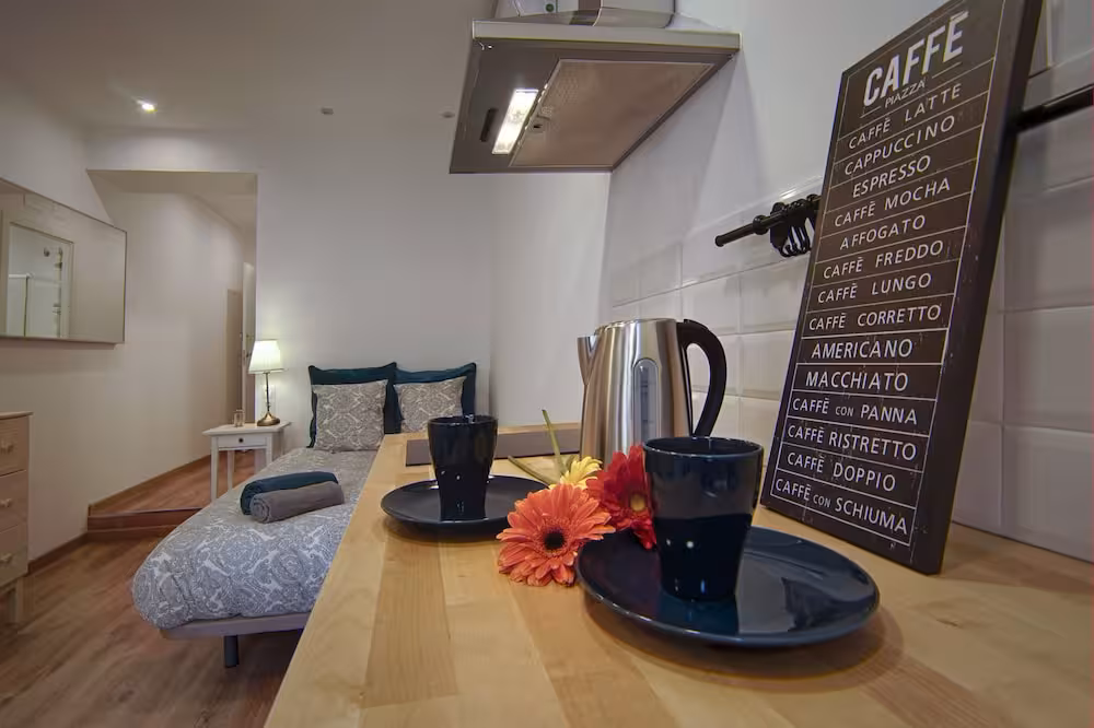 Air conditioning and central heating ensure that rooms maintain comfortable temperatures. Rooms include a double bed. Extra beds can be requested. A kitchenette with a refrigerator is also provided. An ironing set is provided for guests' convenience. A flatscreen television and WiFi (no extra charge) are provided as well. Bathrooms are equipped with a shower and include a hairdryer. As a special feature, bathrooms are also stocked with cosmetic products and a selection of towels. The hotel has non-smoking rooms.