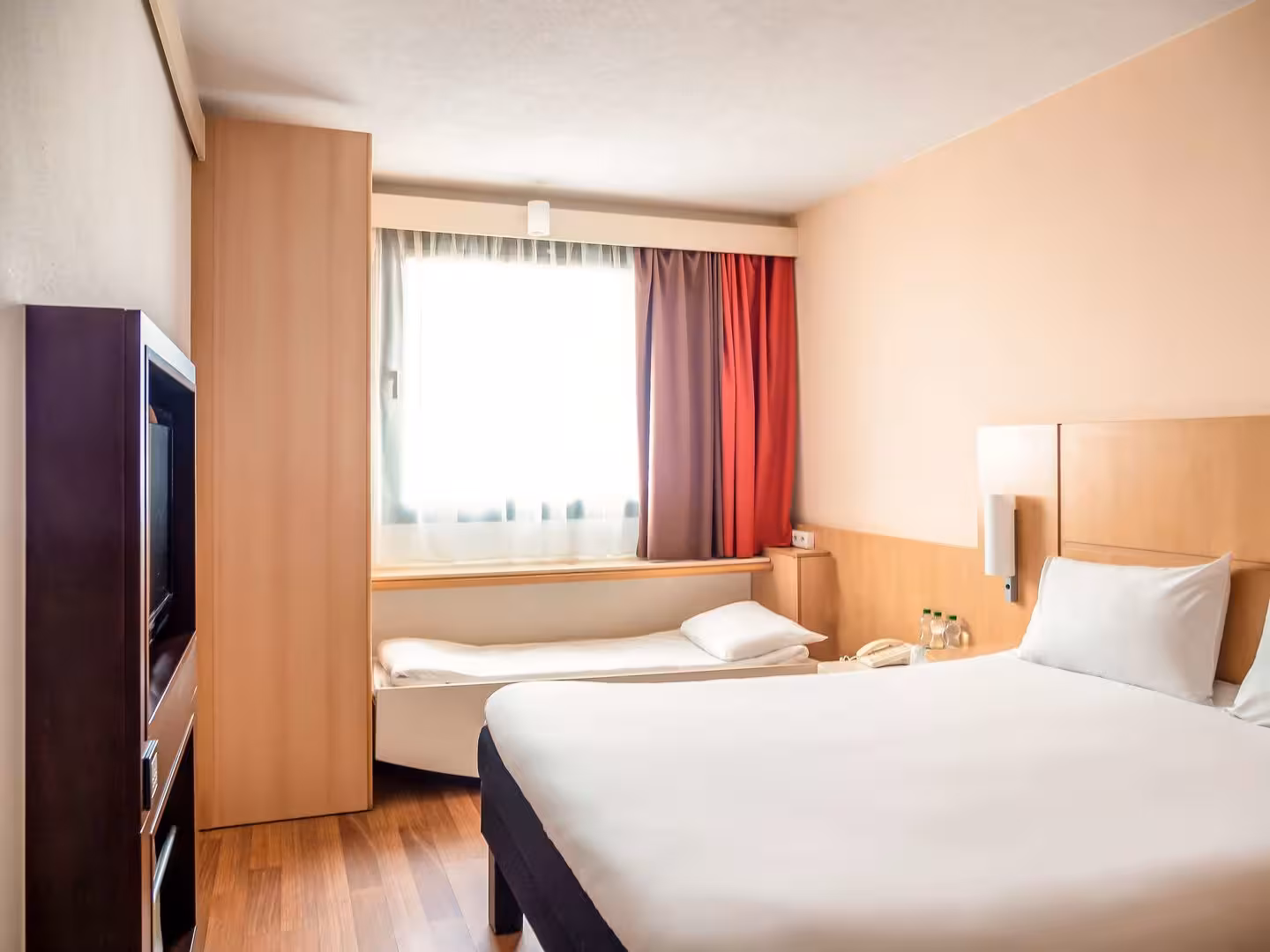 Air conditioning and central heating ensure that rooms maintain comfortable temperatures. Rooms have a double bed or a queen-size bed. Extra beds can be requested. A safe and a desk are also available. An ironing set is provided for guests' convenience. A telephone, a television with satellite/cable channels, a radio, an alarm clock and WiFi (no extra charge) are provided as well. Bathrooms are equipped with a shower and a bathtub, as well as a hairdryer. Guests can also book wheelchair-friendly rooms with wheelchair-accessible bathrooms. The hotel has family rooms and non-smoking rooms.