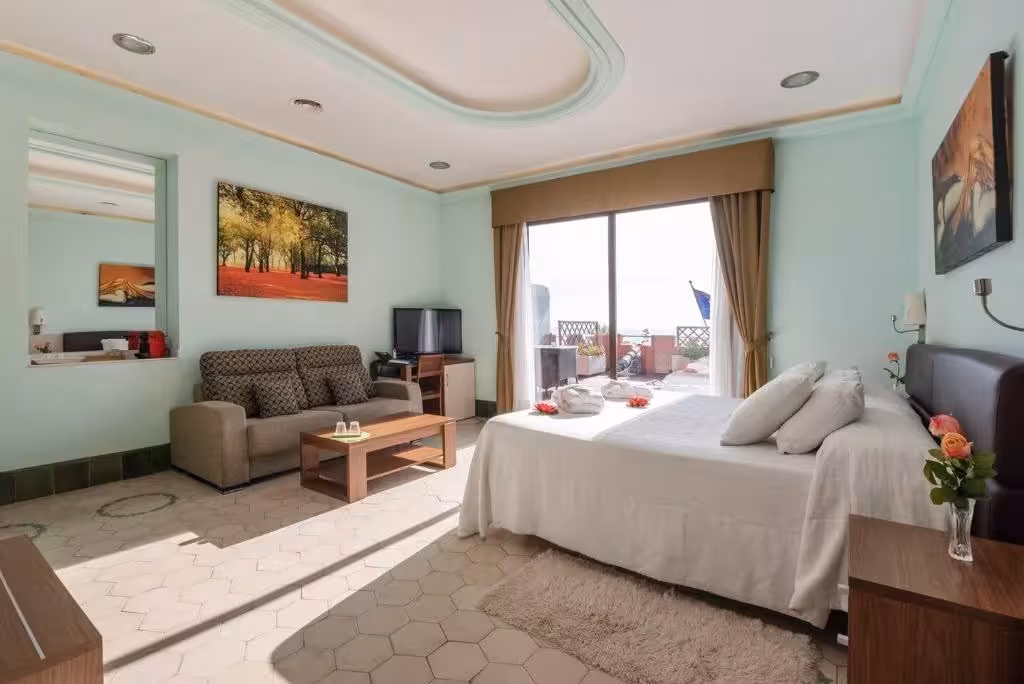 Central heating ensures that rooms maintain comfortable temperatures. Most units have a sea view. The rooms have a double bed and a sofa bed. Extra beds can be requested. A safe and a minibar are also available. Satellite television and WiFi provide all the essentials for a comfortable holiday. A hairdryer and a telephone are on hand in the bathrooms for everyday use. The hotel has family rooms and non-smoking rooms.