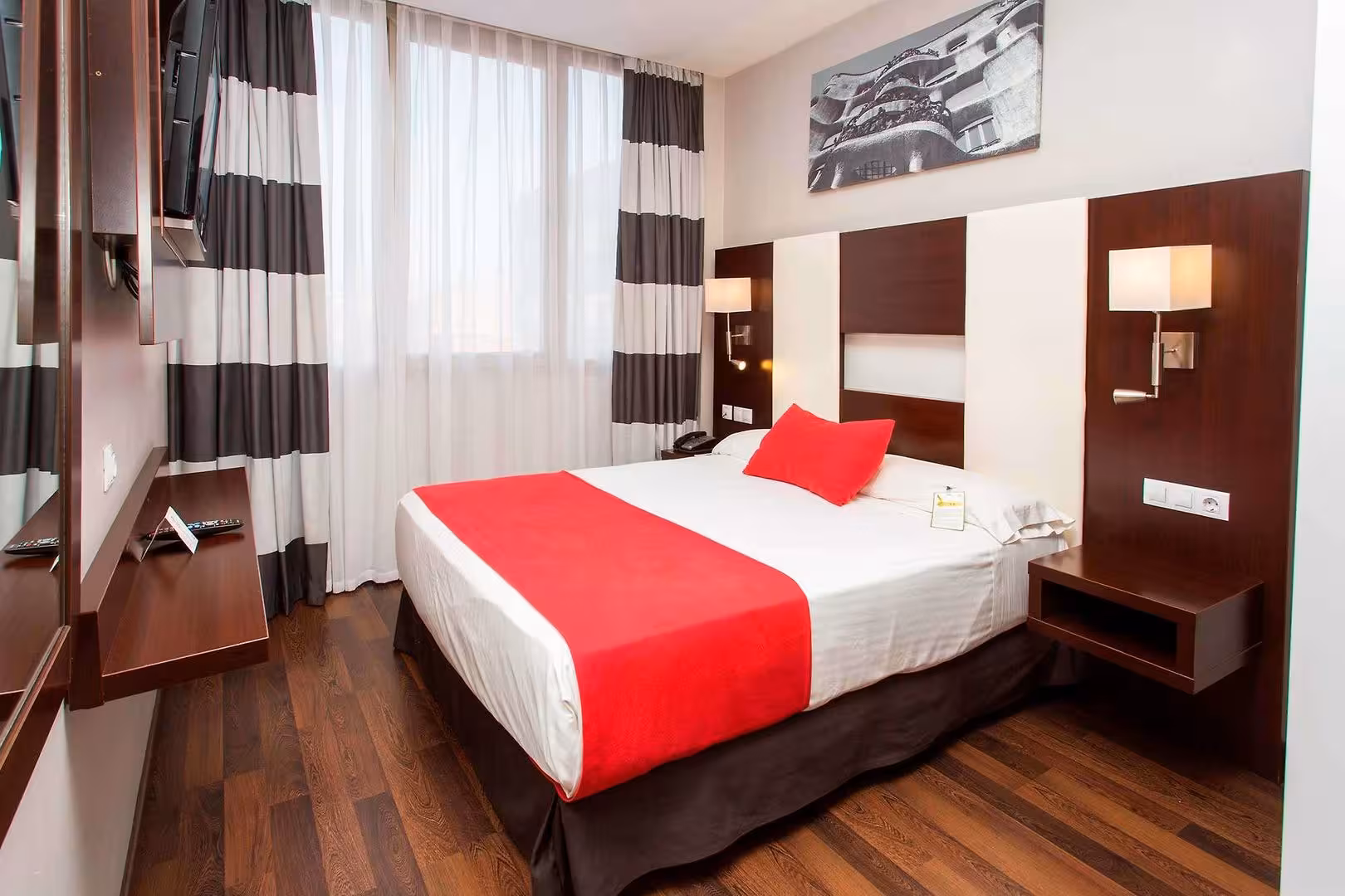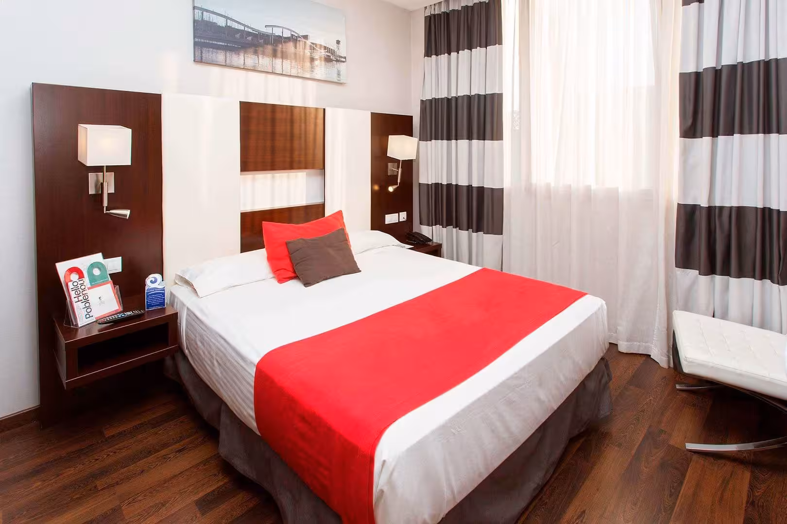 Air conditioning and individually adjustable heating ensure that rooms maintain comfortable temperatures. Rooms have a double bed, a queen-size bed or a sofa bed. Extra beds can be requested. A safe, a minibar and a desk are also available. Guests will also find a refrigerator included among the standard features. A direct dial telephone, a television with satellite/cable channels and WiFi (no extra charge) provide all the essentials for a comfortable holiday. A hairdryer and a telephone are available in the bathrooms, which are equipped with a shower and a bathtub. As a special feature, bathrooms are also stocked with cosmetic products and a selection of towels. Wheelchair-friendly rooms can be booked. The hotel has family rooms and non-smoking rooms.