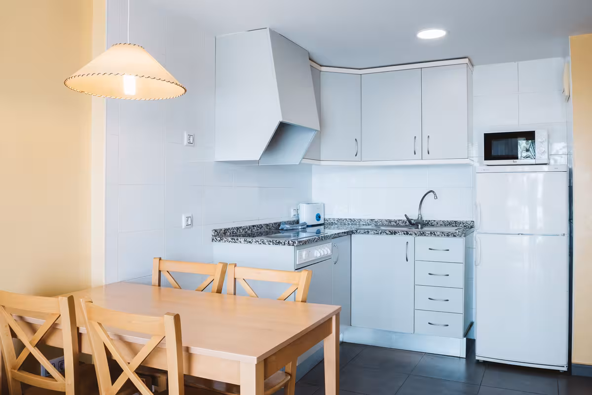 Air conditioning and central heating ensure that rooms maintain comfortable temperatures. A balcony is included as standard in some rooms. The rooms have a double bed and a sofa bed. Separate bedrooms are available. Children's beds can be requested for younger guests. A safe and a desk are also available. For self-catering guests, there is a well-equipped kitchenette with a refrigerator, stovetop, microwave, tea/coffee station and oven. A direct dial telephone, a TV and WiFi (for a fee) provide all the essentials for a comfortable holiday. Bathrooms are equipped with a shower and a bathtub, as well as a hairdryer. Family rooms are available for parents with children.