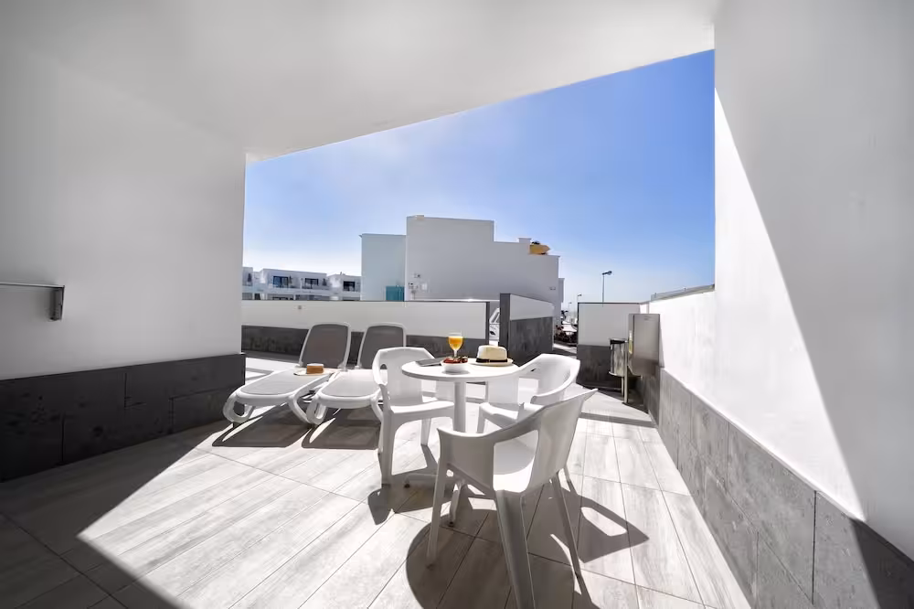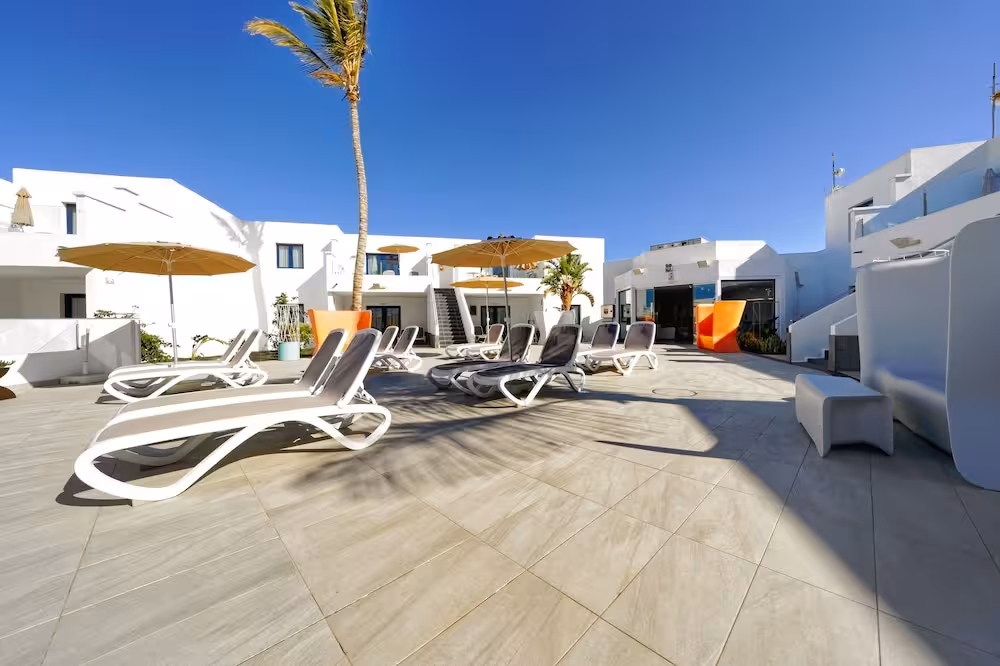 This appealing apartment hotel is located in on of the peaceful side streets and is right in the tourist area of Puerto del Carmen. A beautiful sand beach is only 600m away. The various shopping facilities and entertainment venues in the lively centre can be reached within only a few minutes on foot. A bus stop may be found only 600 m from the hotel.